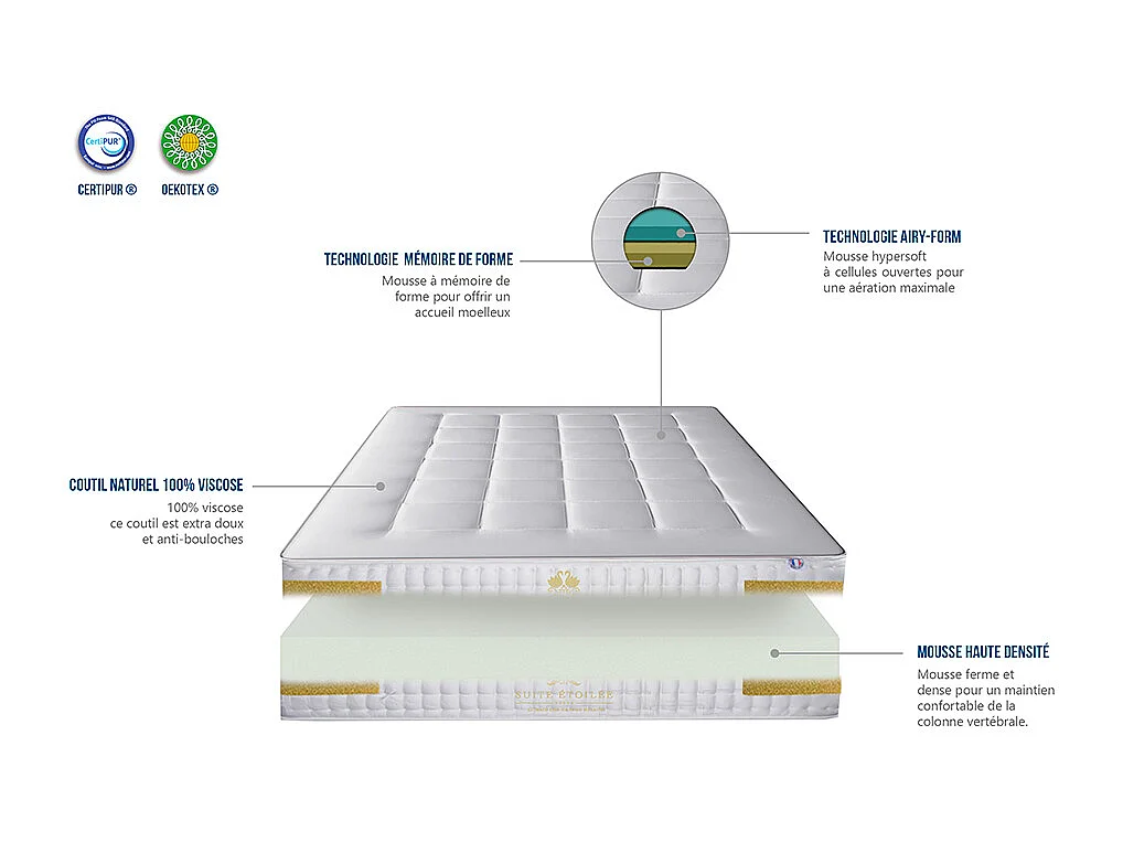 SUITE ETOILEE | Matelas SUITE IMPERIALE 90x200 cm | Mousse avec mémoire de forme