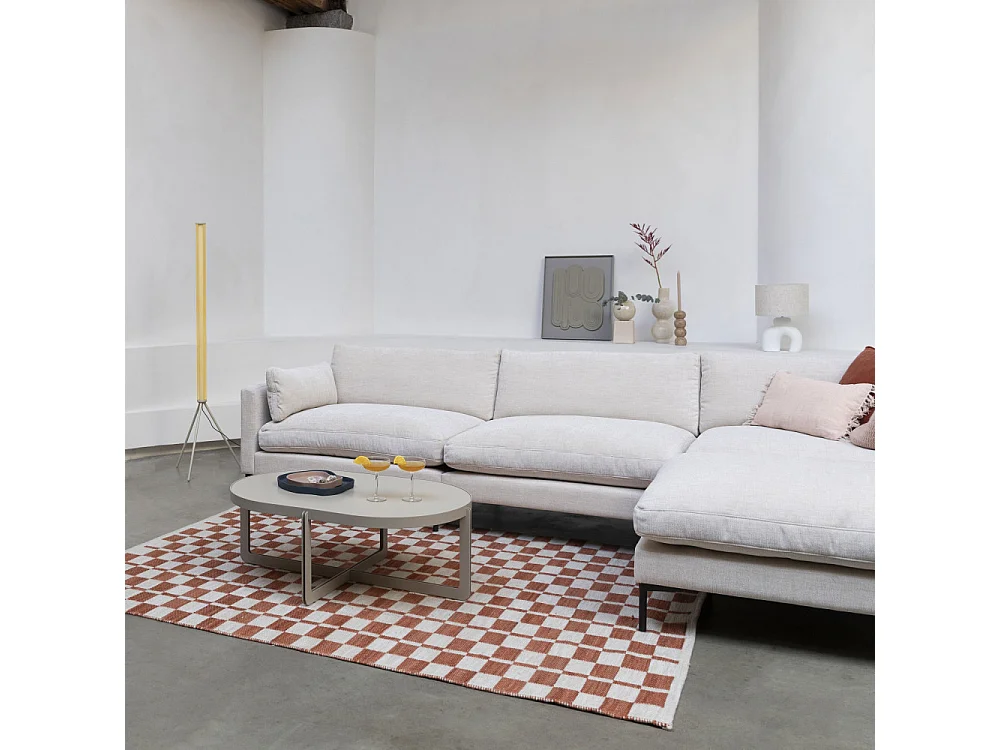 Summer - Canapé droit 5 places en tissu et pieds en métal - Écru