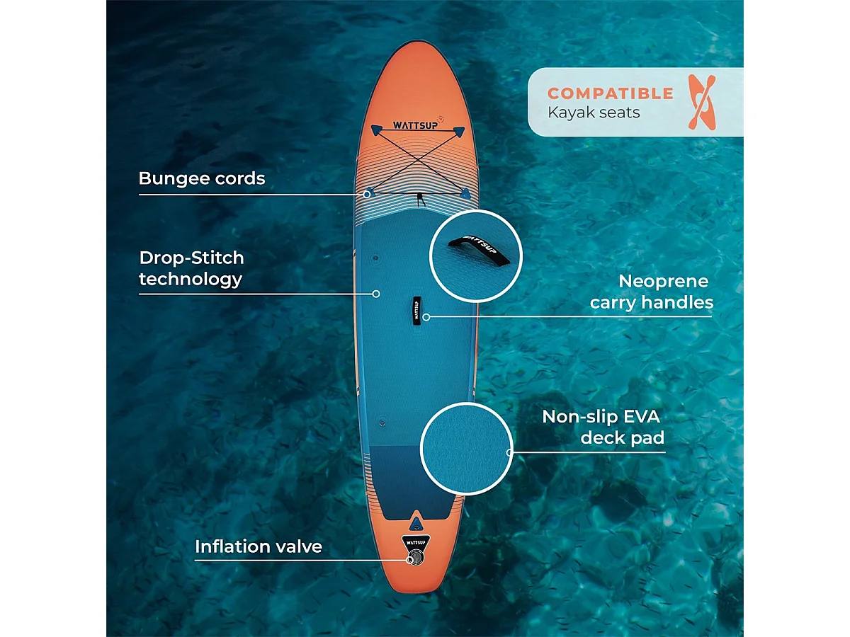 Sup Gonflable WATTSUP F11 11' - 325x81x15cm Dropstitch - Pack Pagaie Leash Pompe Sac de Transport