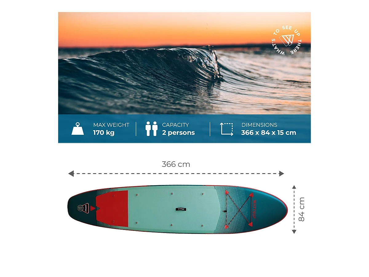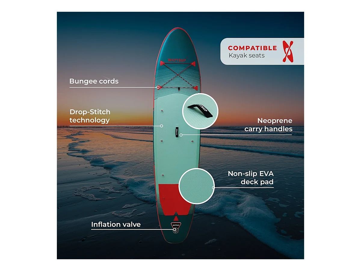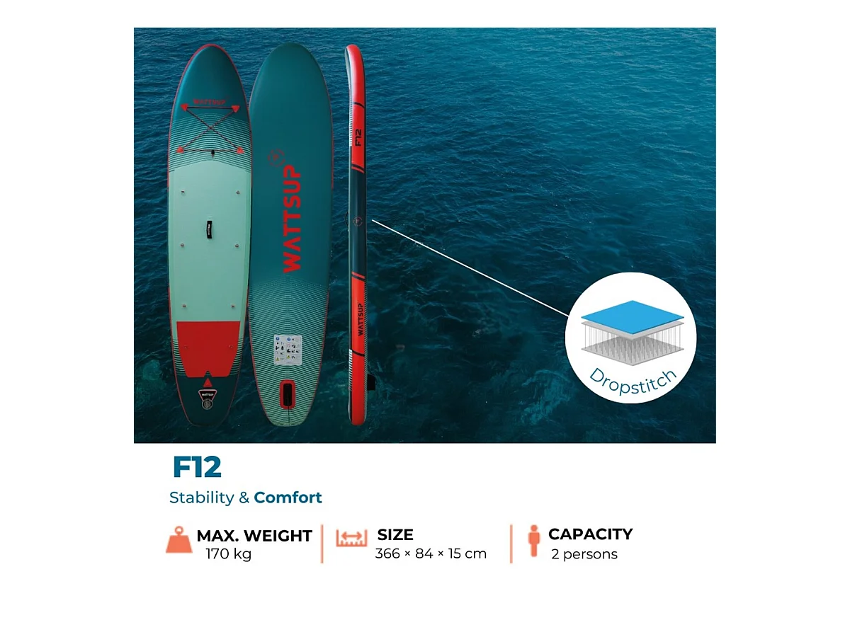 Sup Gonflable WATTSUP F12 12' - 366x84x15cm Dropstitch - Pack Pagaie Leash Pompe Sac de Transport