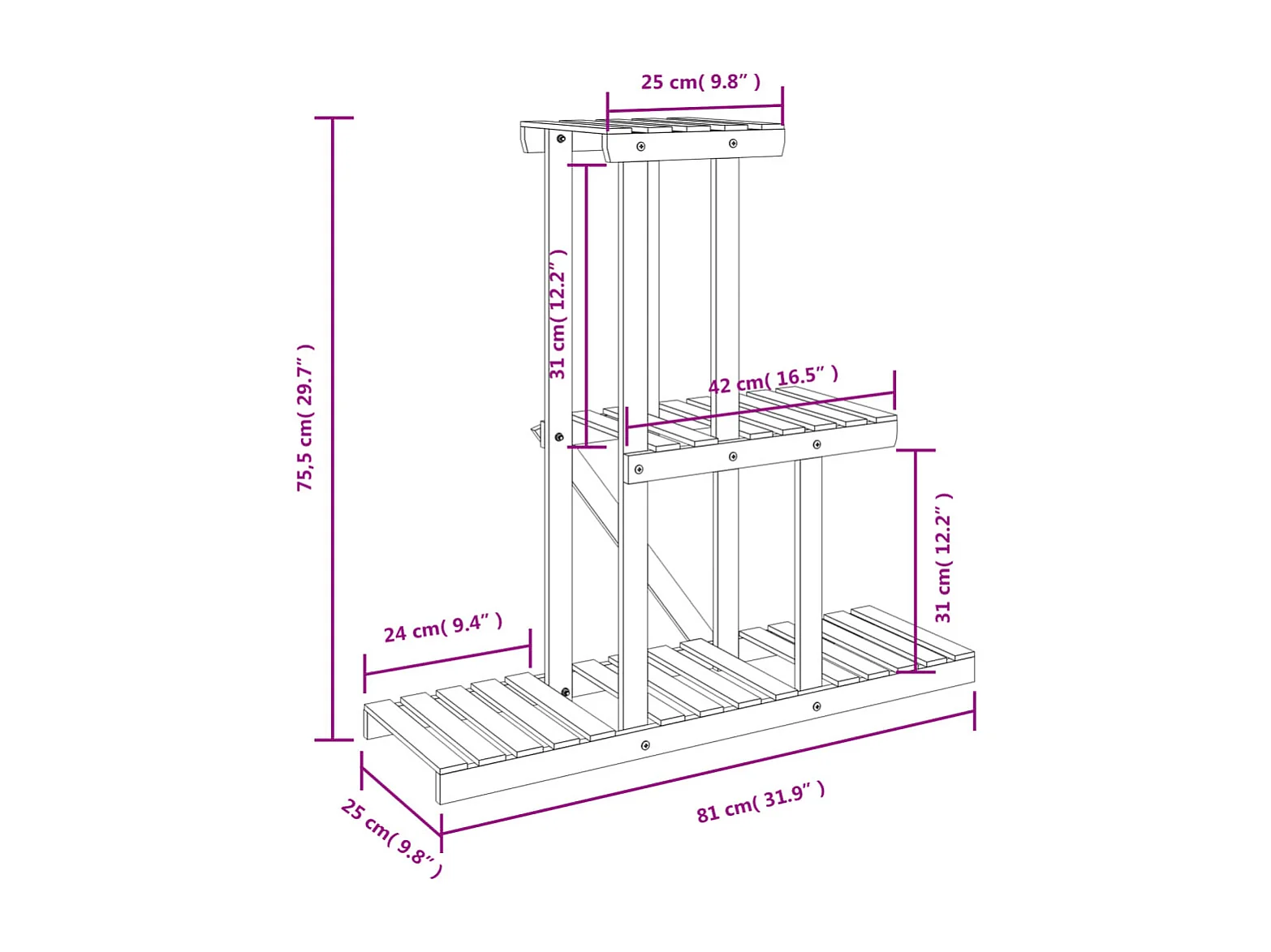 Support à fleurs 81x25x75,5 cm bois massif de sapin
