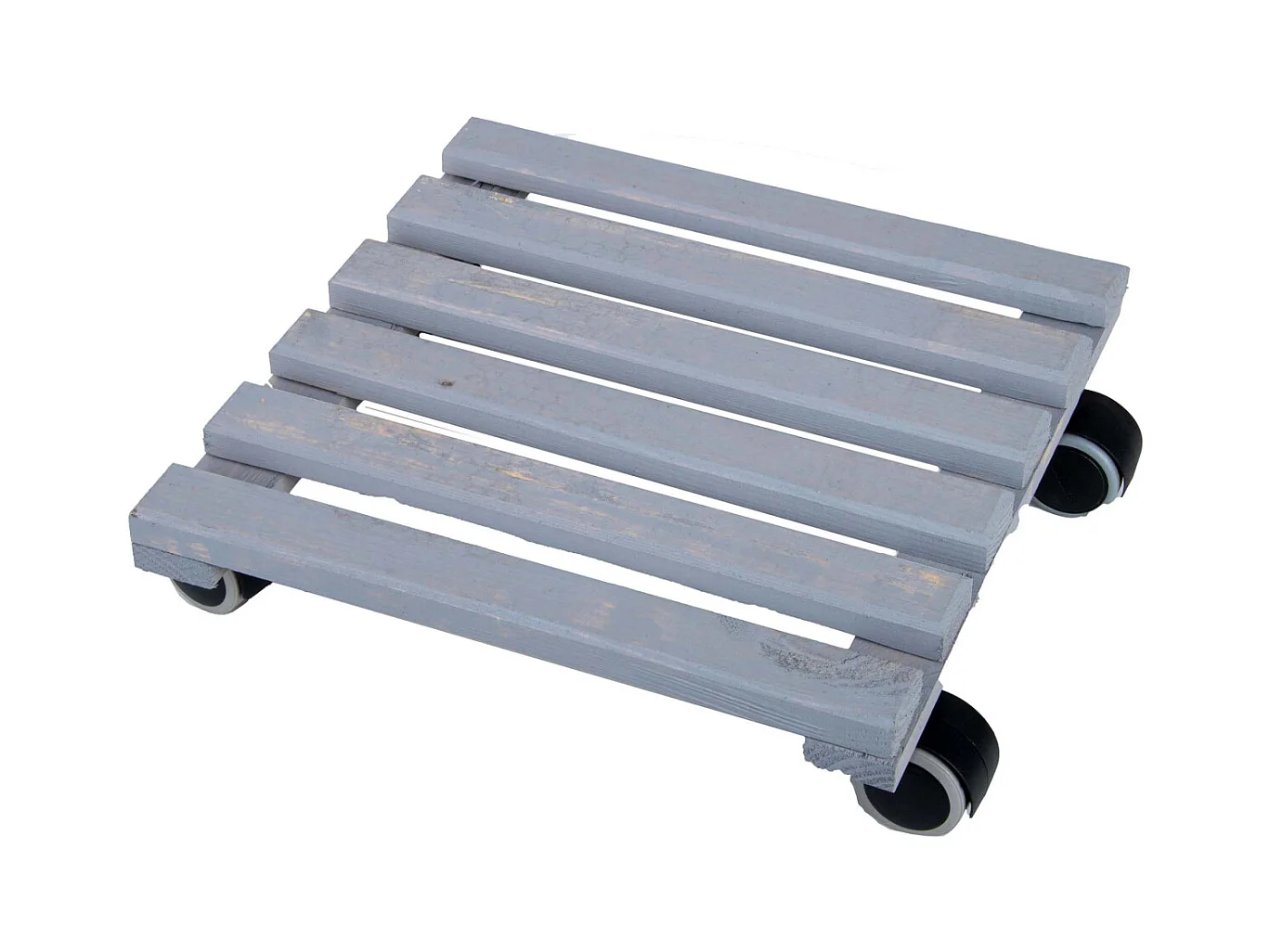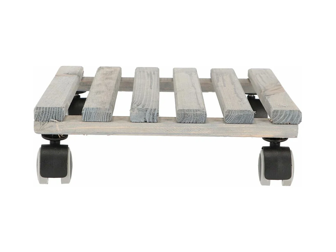 Support à roulettes en bois pour plantes d'intérieur Carré - Gris