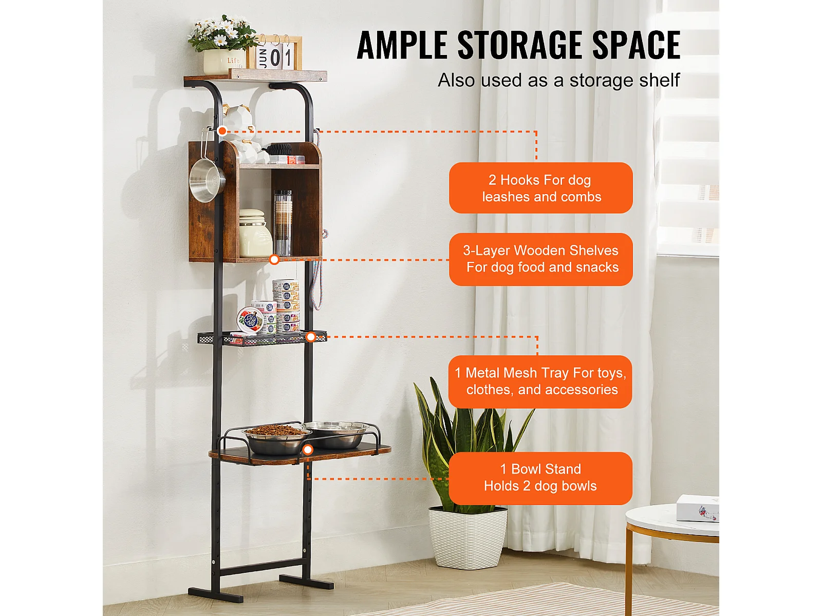 Support de Gamelle Surélevée Réglable pour Chiens SucceBuy, avec Rangement et Bols Surélevés