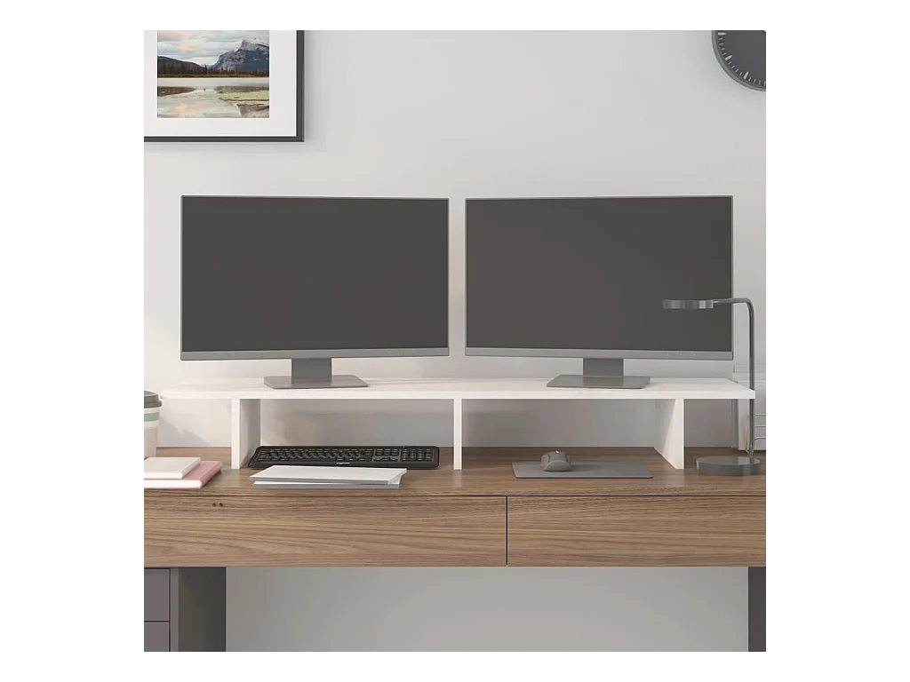 Support de moniteur blanc 100x27x10 cm bois d'ingénierie
