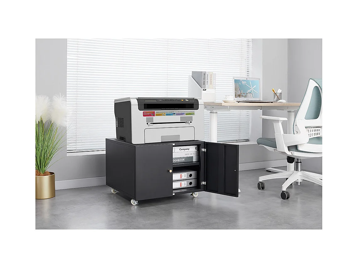 Support d'imprimante en métal avec tables d'impression mobiles avec porte et étagère réglable classeur à roulettes pour bureau à domicile noir