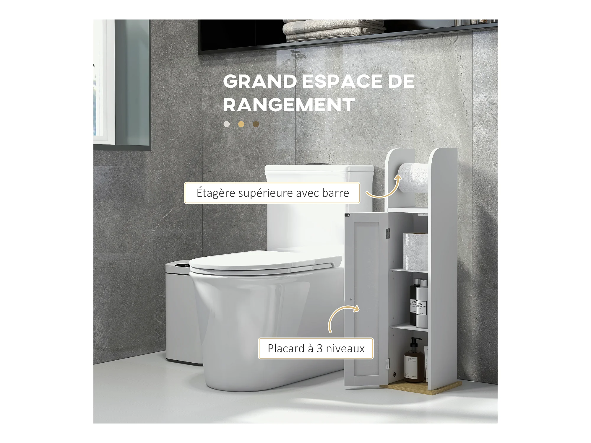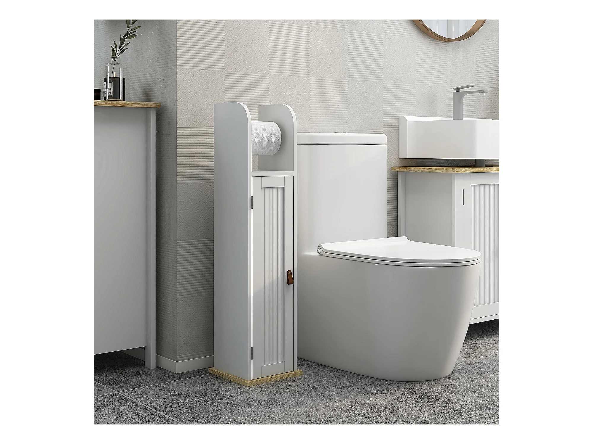 Meuble Réserve et Dérouleur de Papier WC en Bois Blanc
