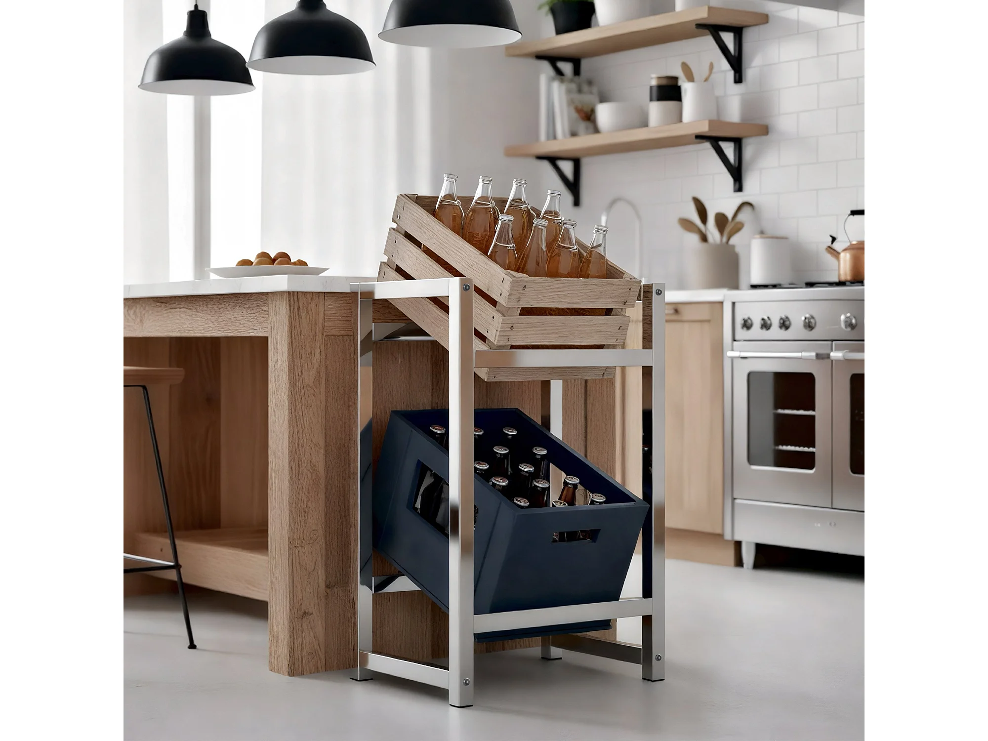 Support pour caisses de boissons - Métal - Chrome - Stack