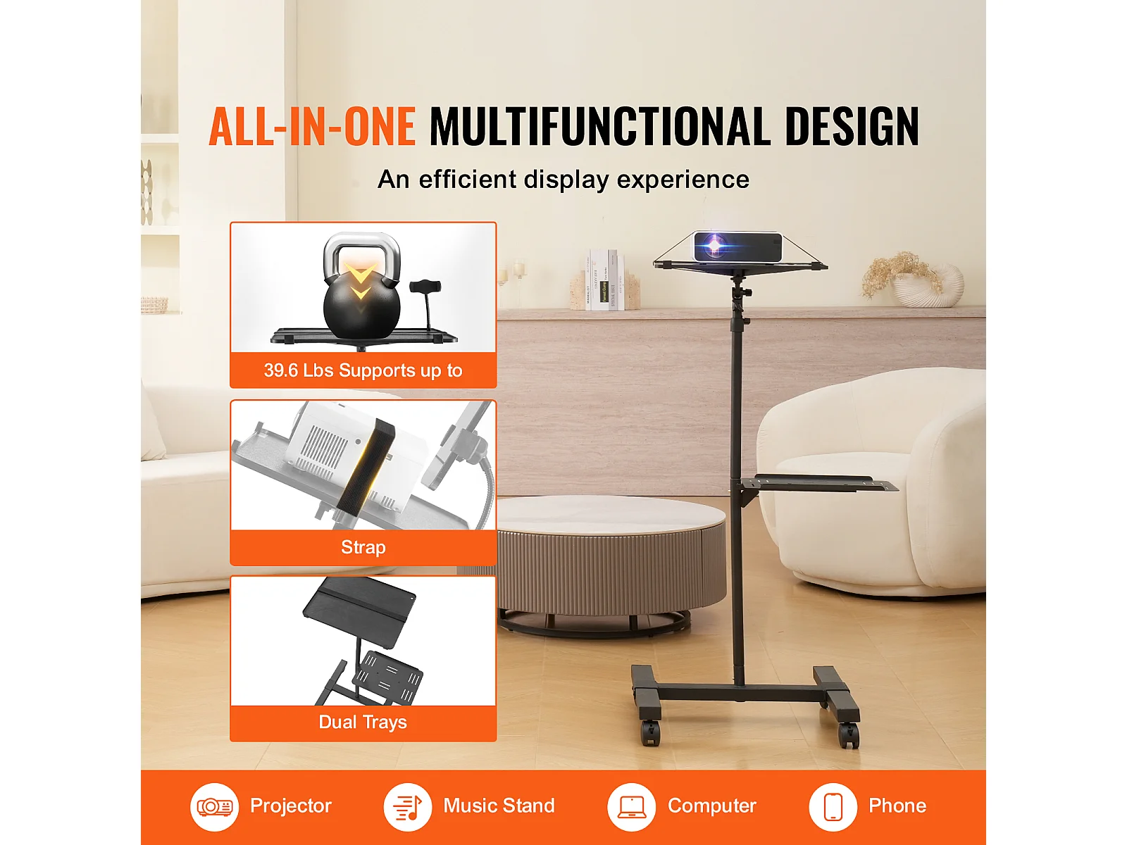 Support pour Vidéoprojecteur SucceBuy Support de Projecteur avec Roulettes, Support de Sol, Hauteur 58 à 145 cm