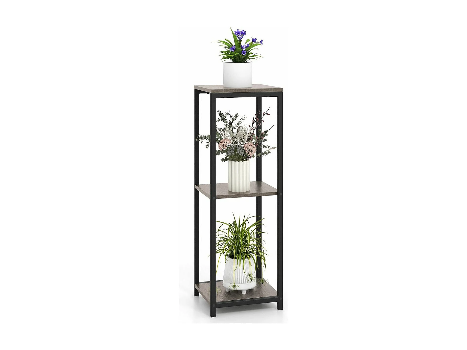 Supports de Plantes Métallique à 3 Niveaux, Porte-Plantes d'Angle avec Dispositifs Anti-basculement, Organisateur de Pots de Fleurs Carré, Gris + Noir