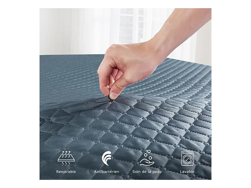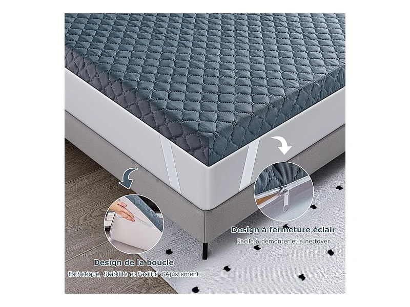 Surmatelas 160x200 cm INRE - Confort Optimal - Moelleux, Anti-acarien, Respirant - Bande élastique - pour Matelas 2 Places - Lavable
