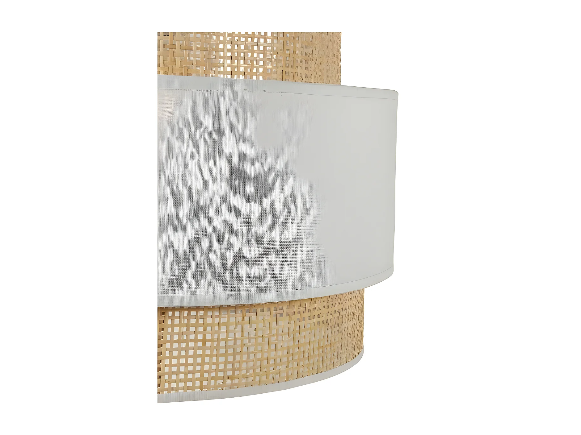 Suspension 3 abat-jours cannage et tissu blanc Ostaria