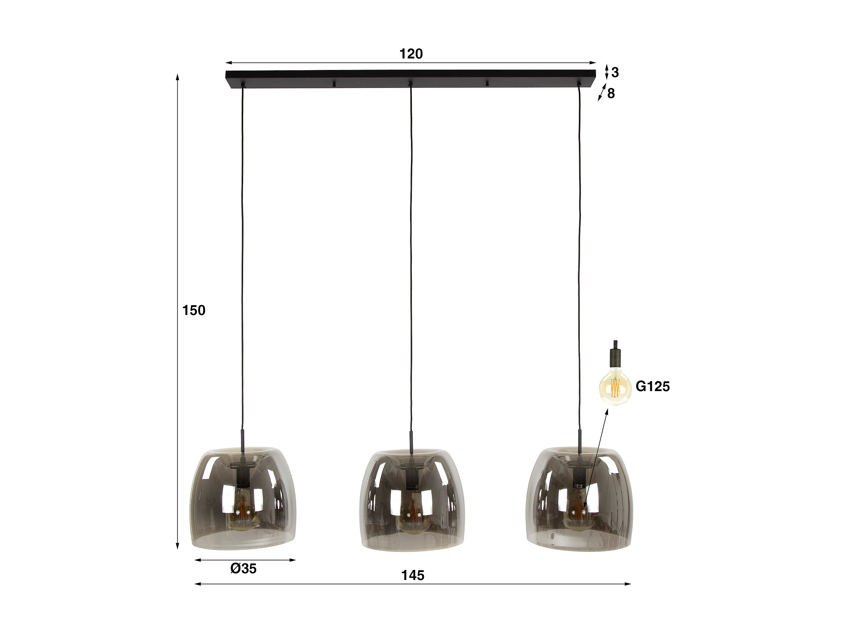 Suspension 3L Drift Glass - Verre gris fumé