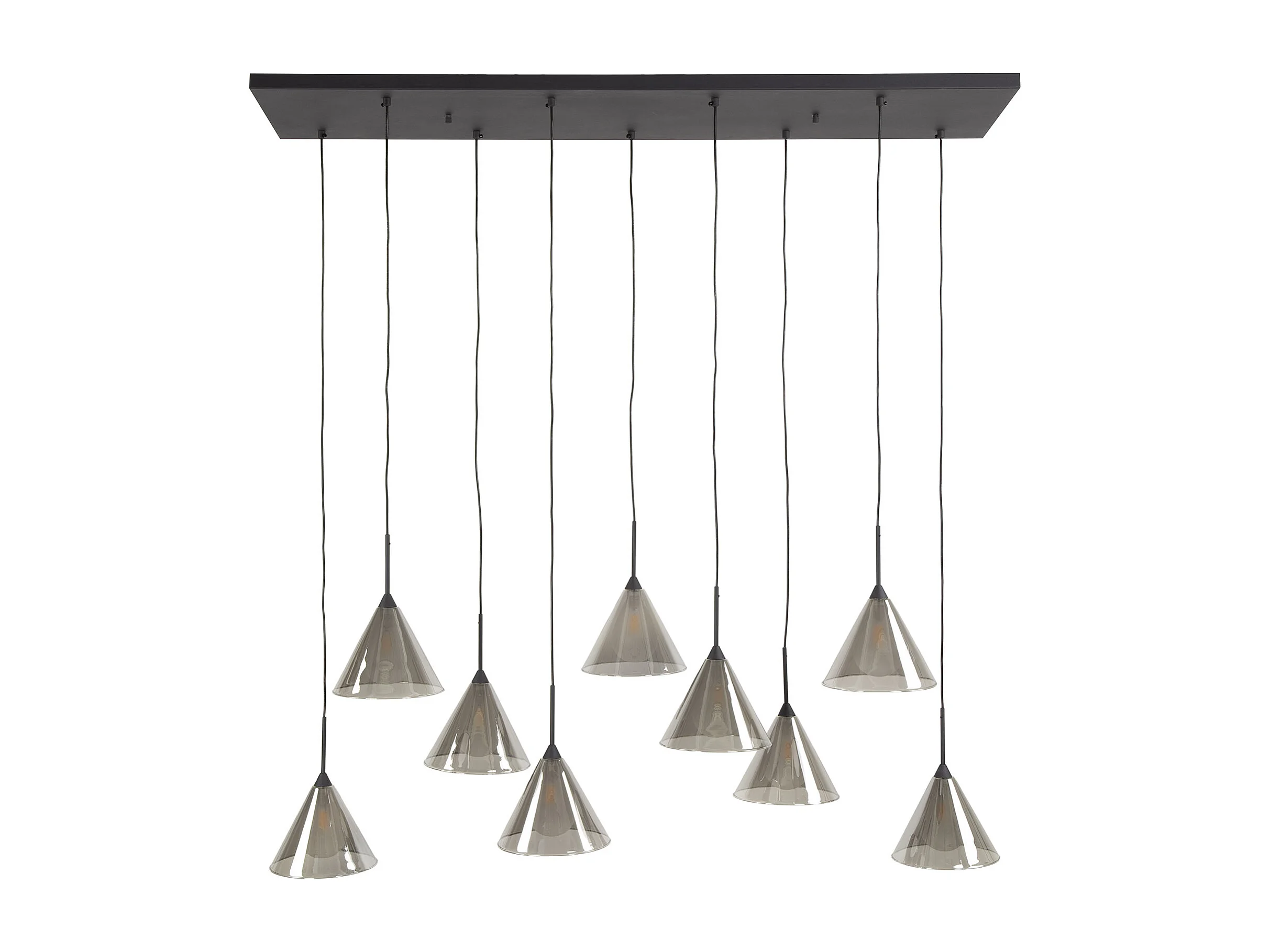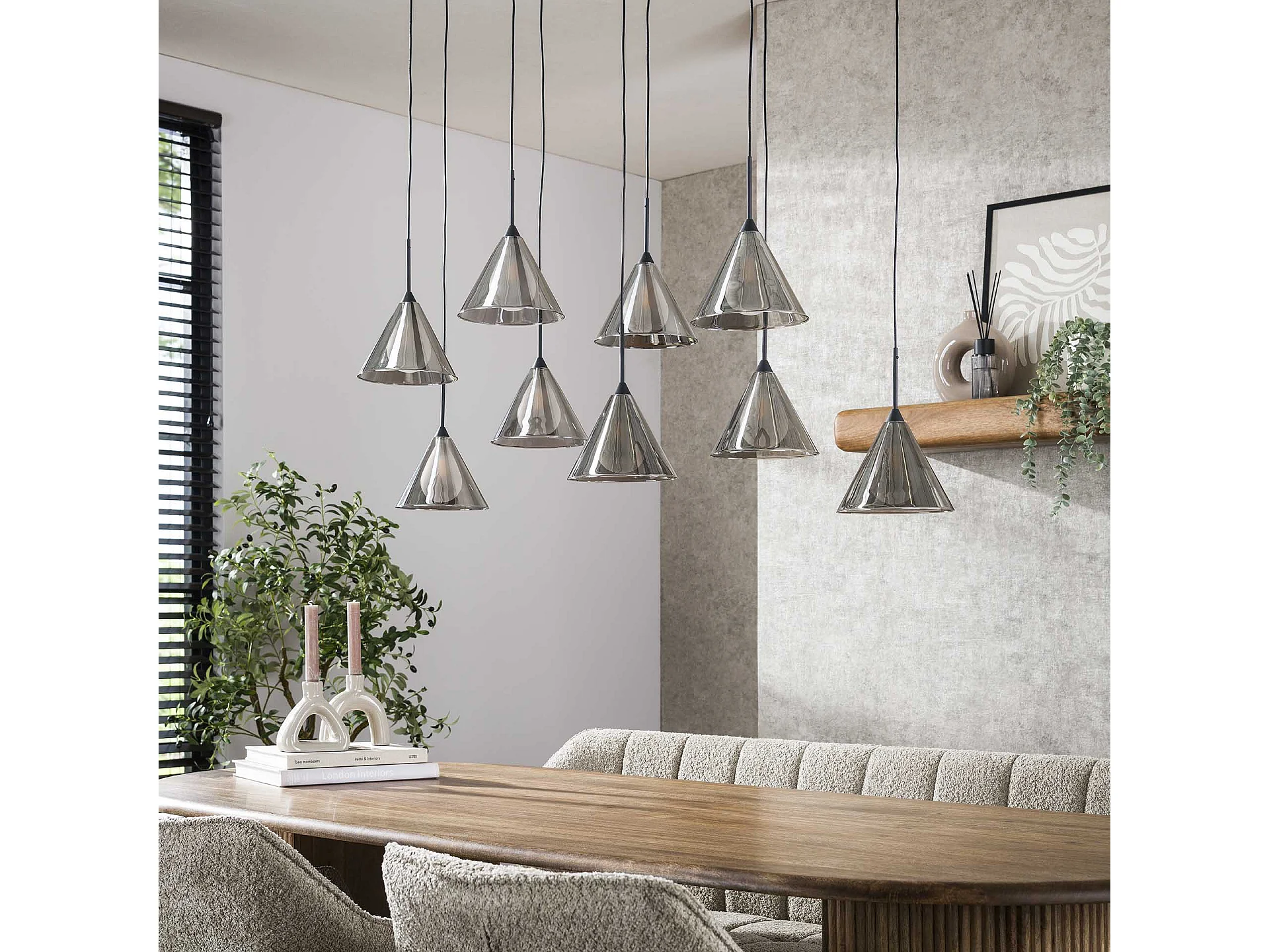 Suspension 5+4 abat-jour conique en verre - Verre gris fumé
