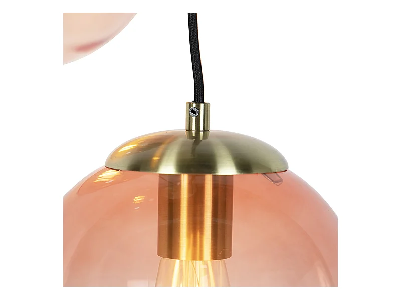 Suspension Art Déco en laiton avec verre rose 20 cm - Pallon