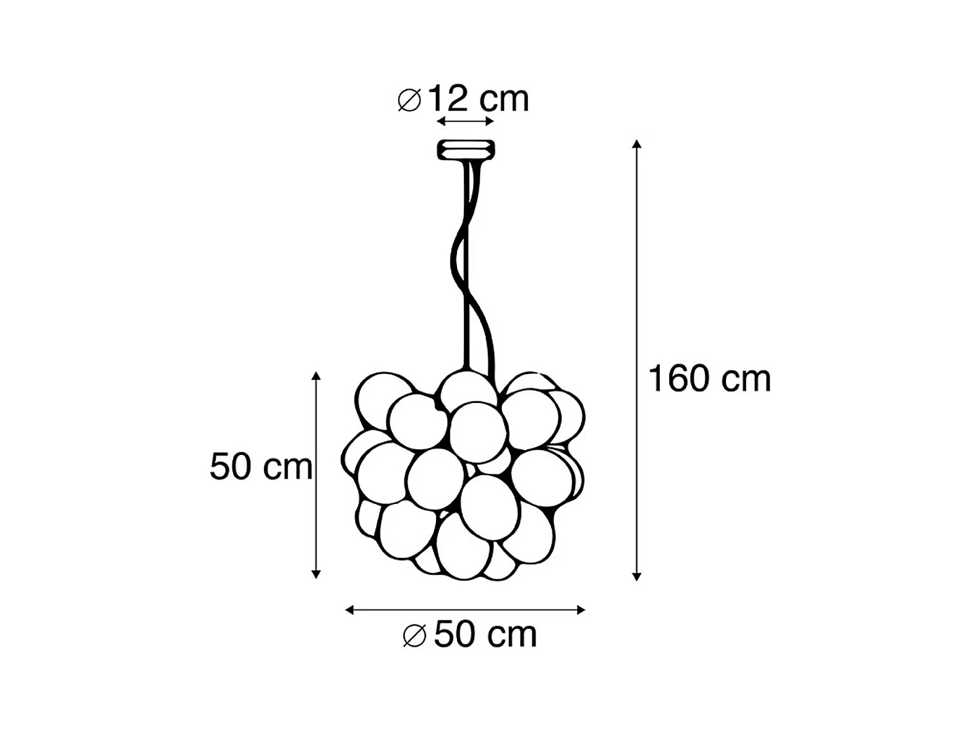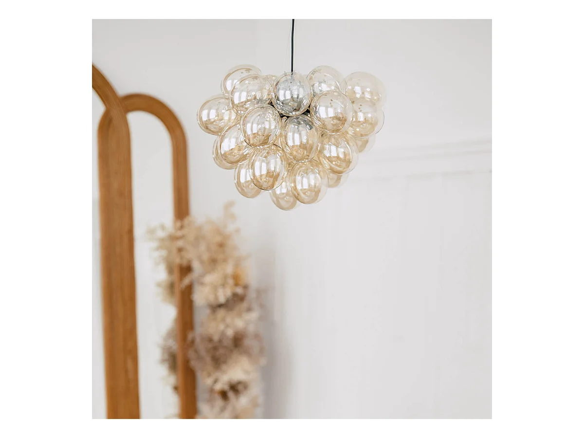 Suspension Art Déco noire avec verre 8 lumières - Uvas