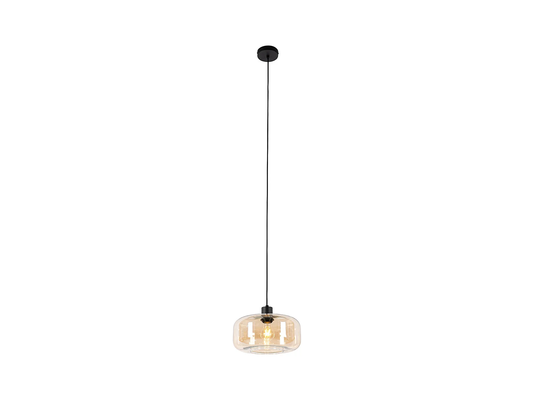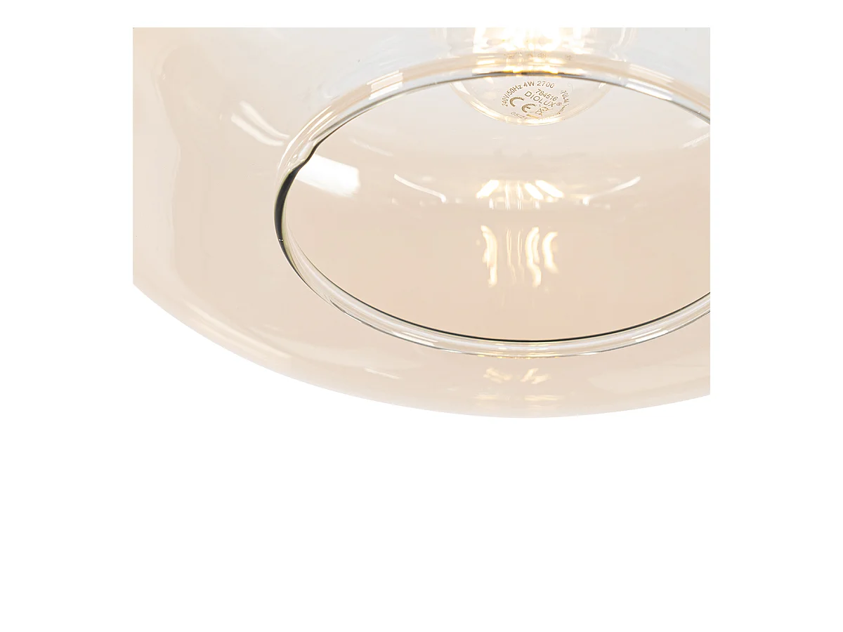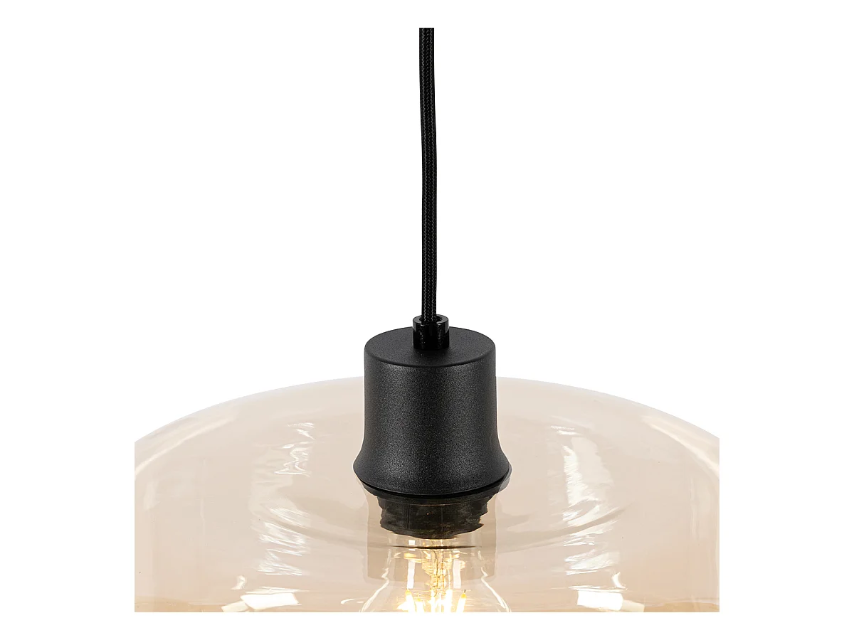Lampe à suspension design noir avec verre ambré 3 lumières 226 cm - Qara