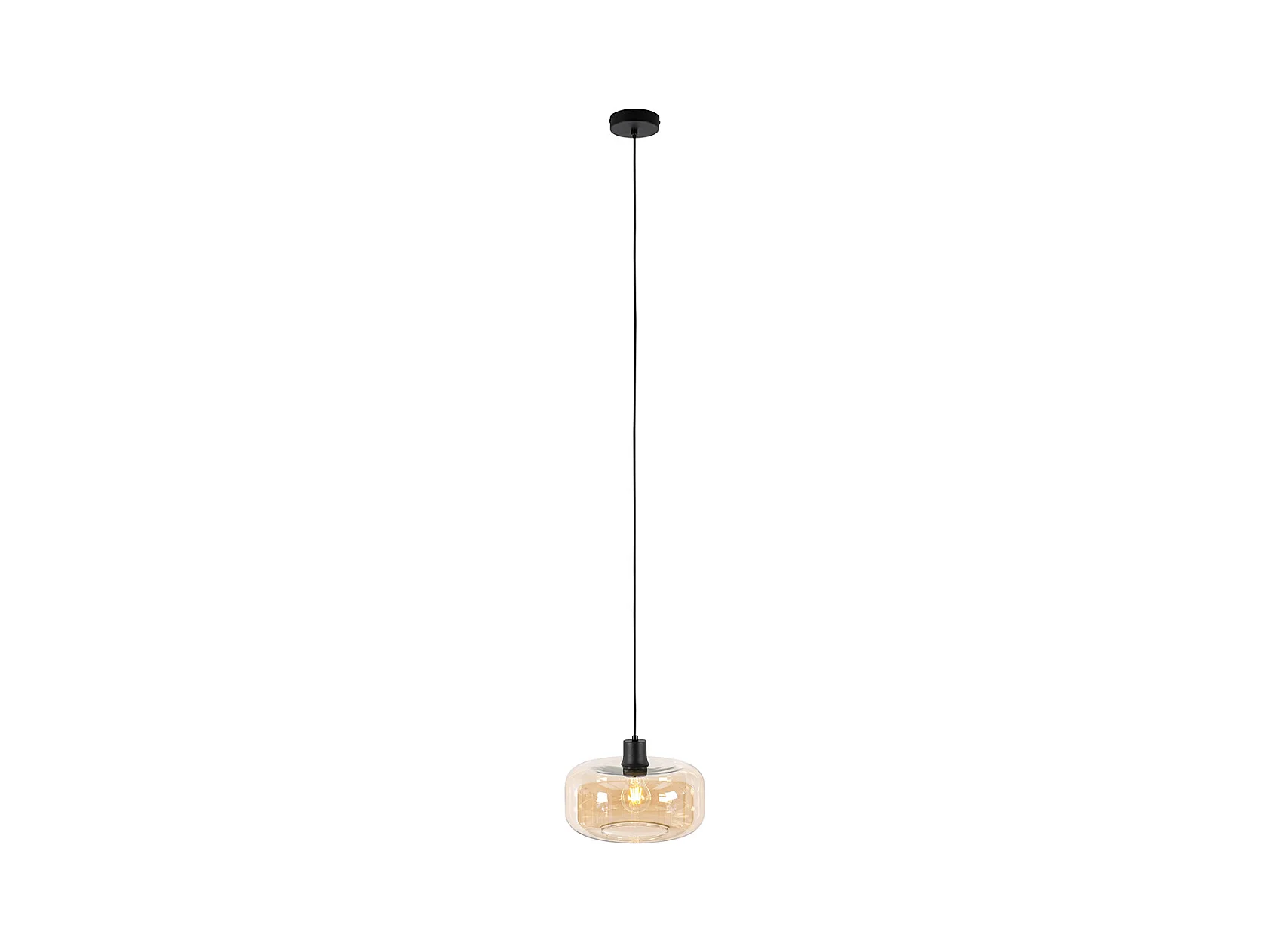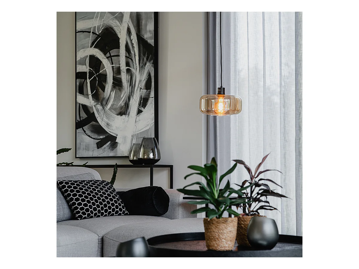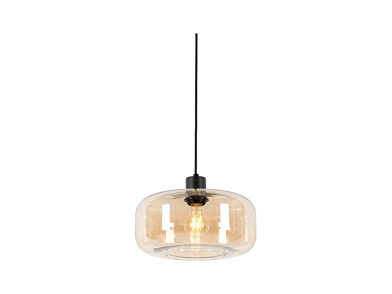 Lampe à suspension design noir avec verre ambré 3 lumières 226 cm - Qara