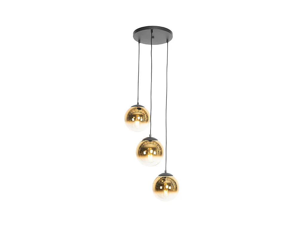 Suspension Art Déco noire avec verre doré ronde 3 lumières - Pallon