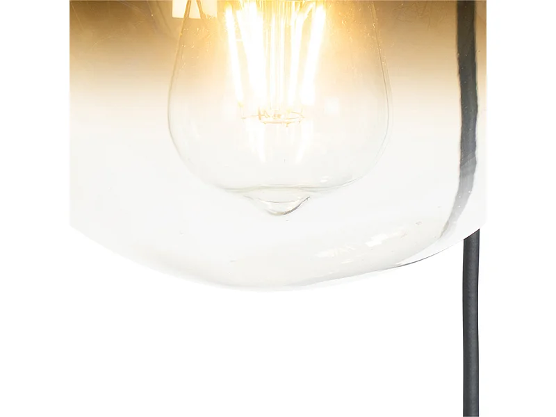 Lampe à suspension Art Déco noire avec verre fumé ronde 3 lumières - Vidro