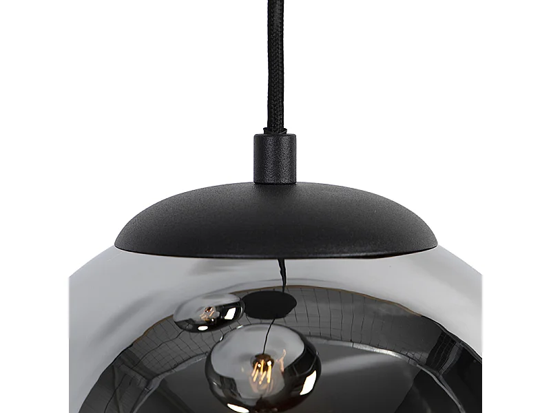 Lampe à suspension Art Déco noire avec verre fumé ronde 3 lumières - Vidro