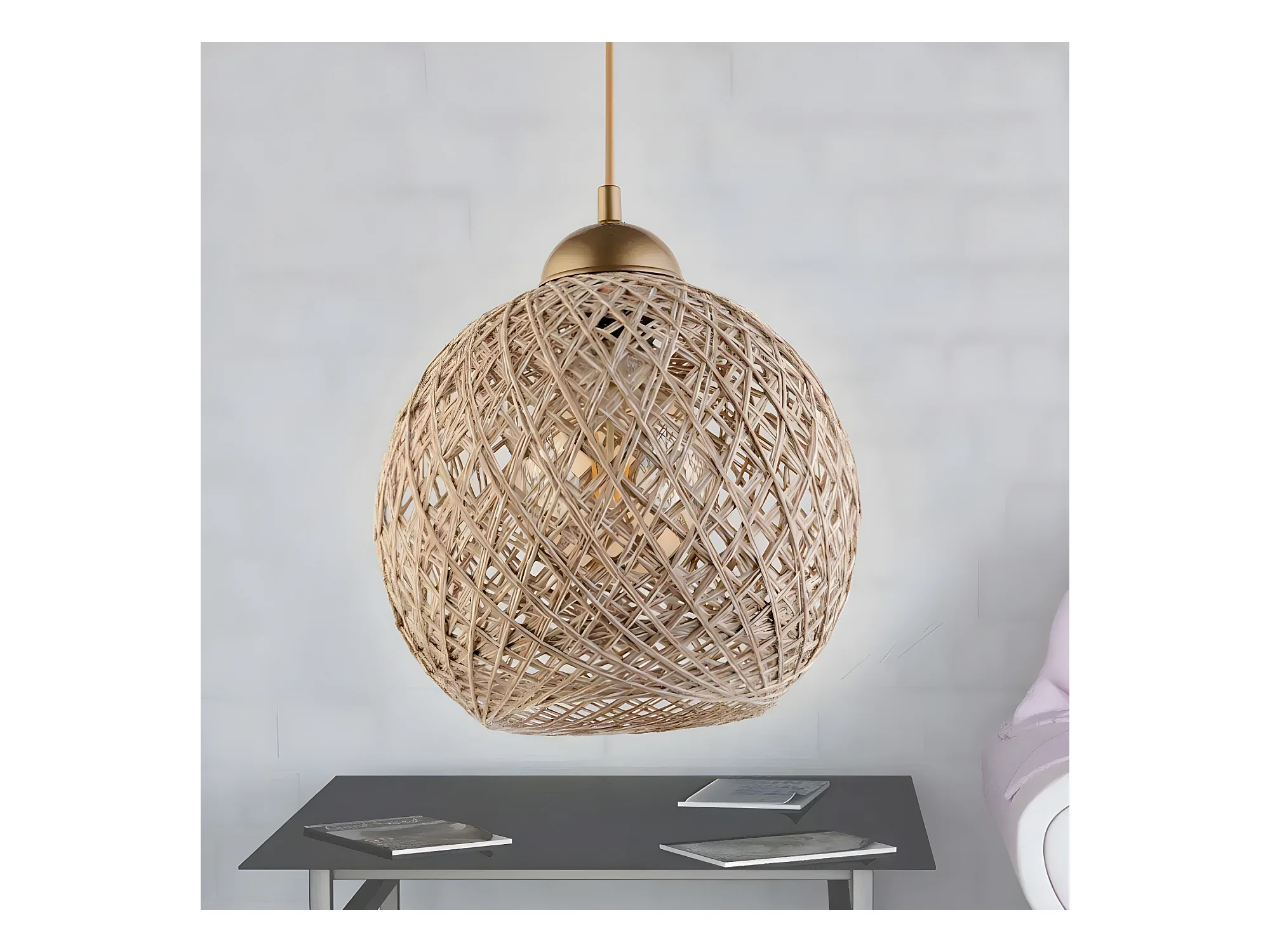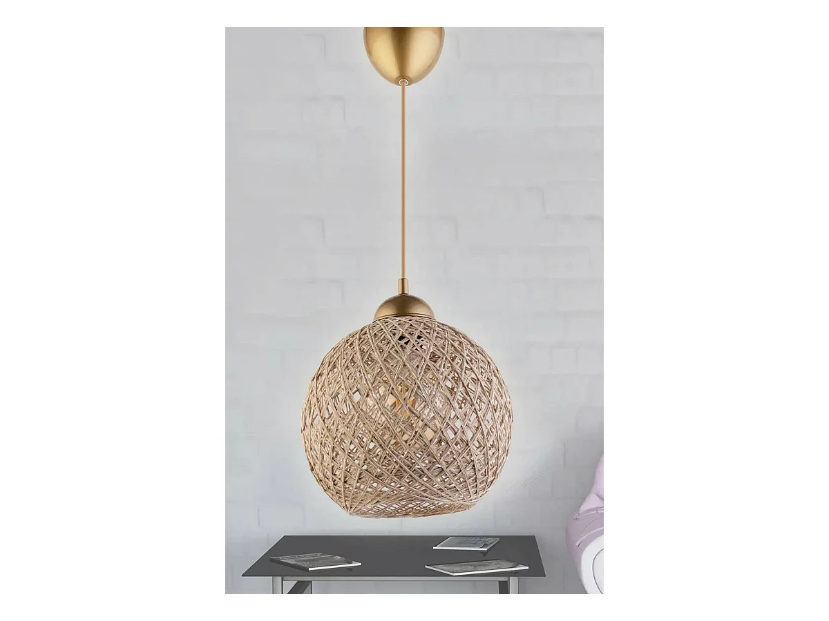 Suspension Berleda D22cm Métal Or et Coton Beige et Blanc
