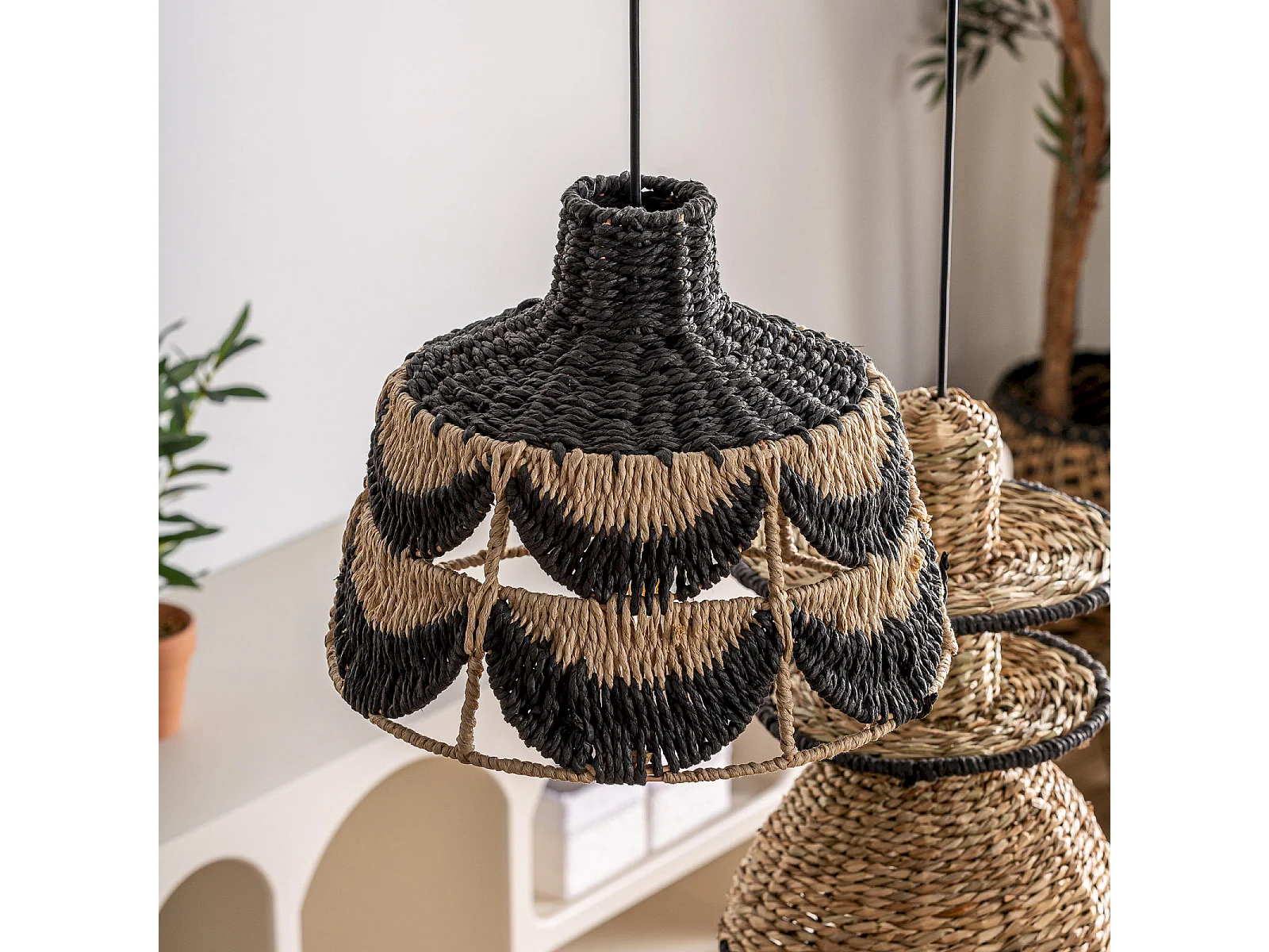 Lampe Suspension en Lin "Poire" 173cm Noir