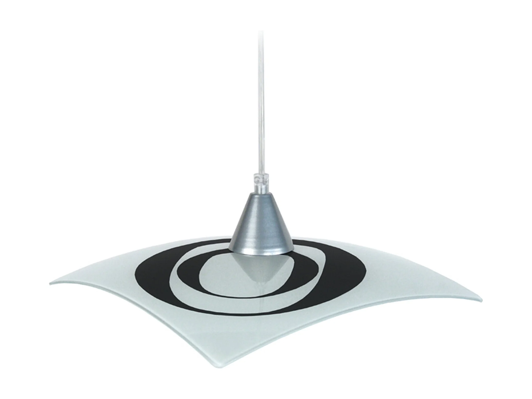 Suspension carré verre blanc lignes noir aluminium 70 cm.