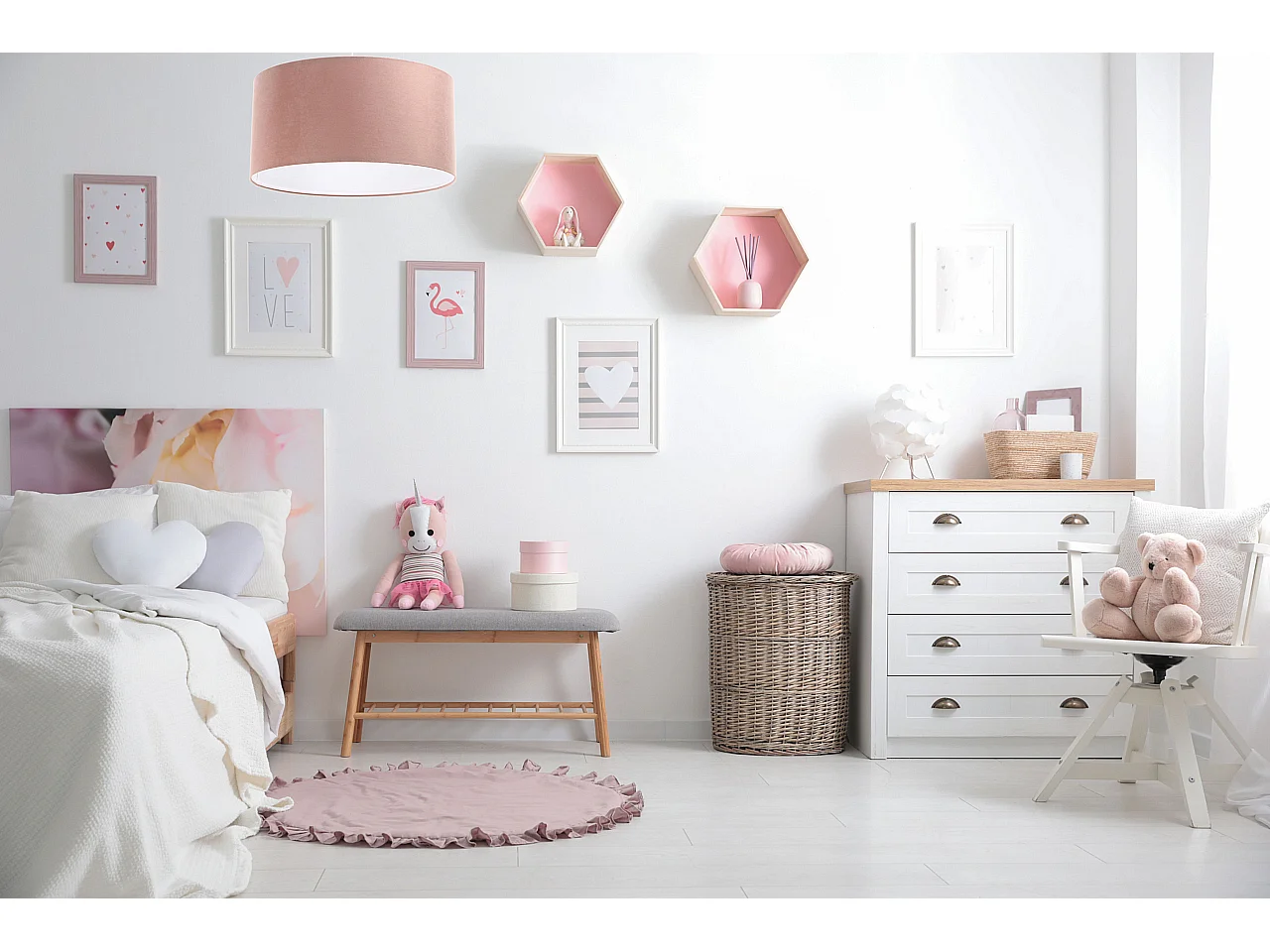 Suspension en tissu rose - réglable en hauteur - 1xE27 - modèle RONDO KIDS de TK LIGHTING