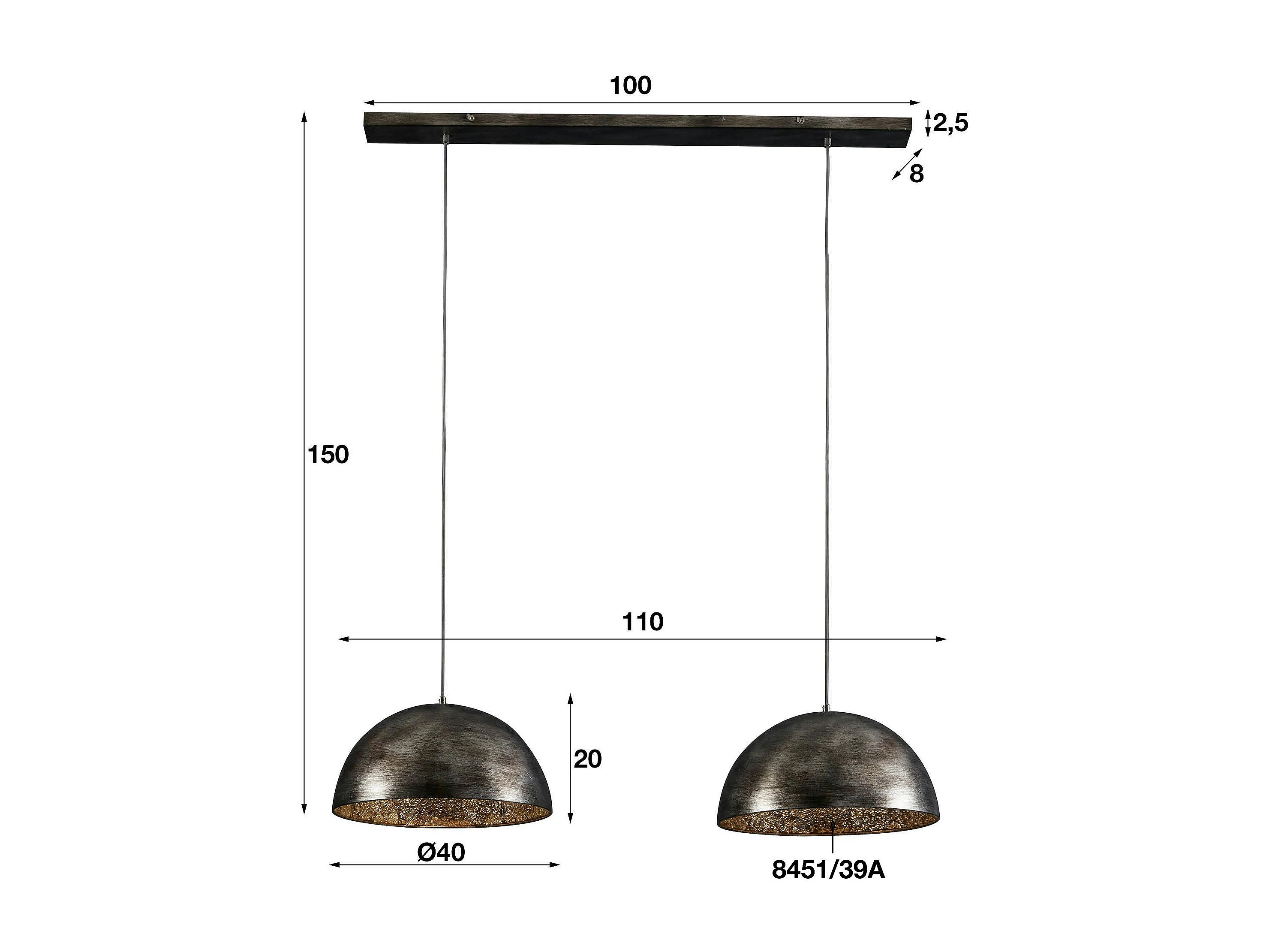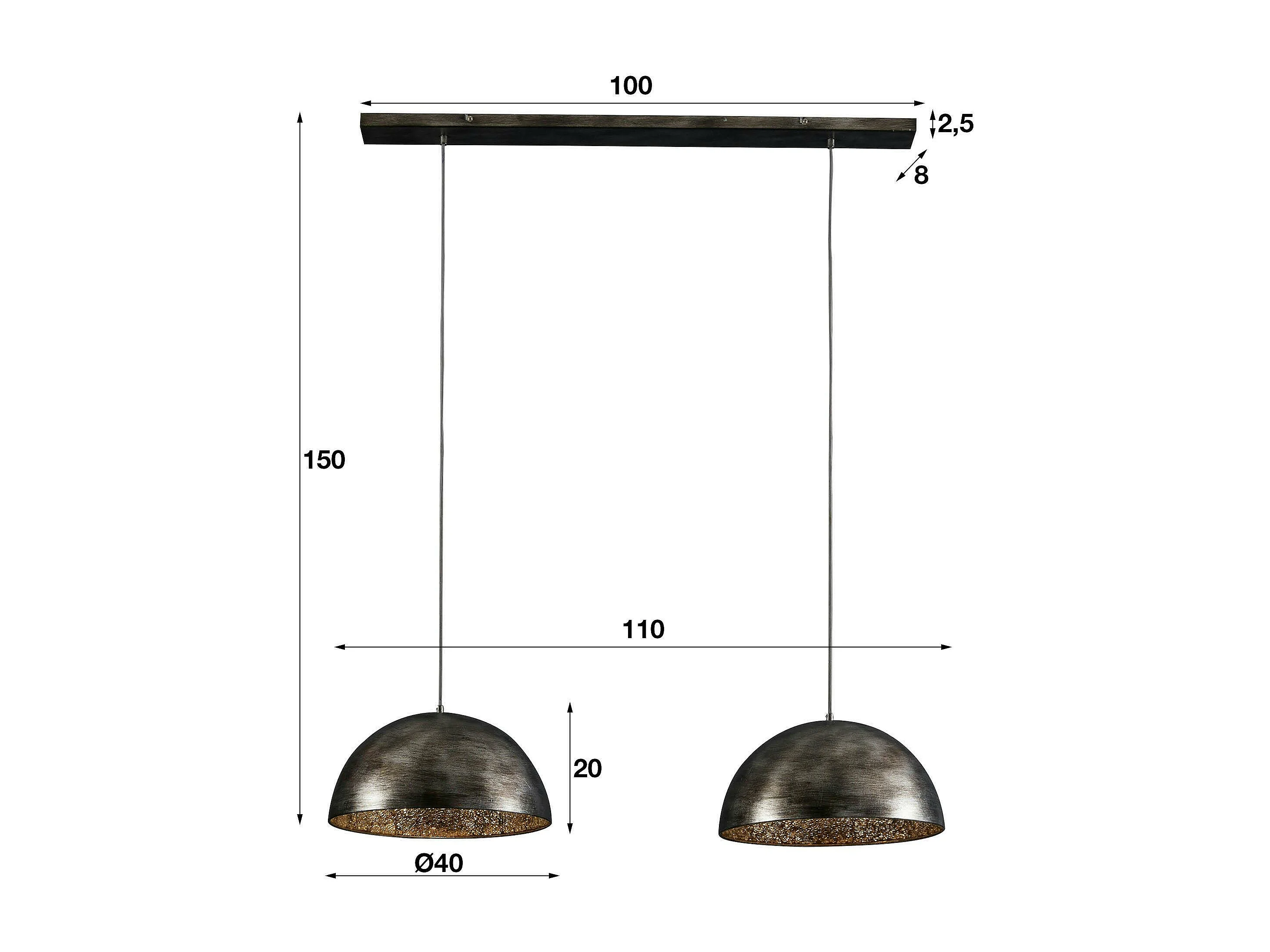 Suspension contemporaine 2 demi-sphères argent vieilli
