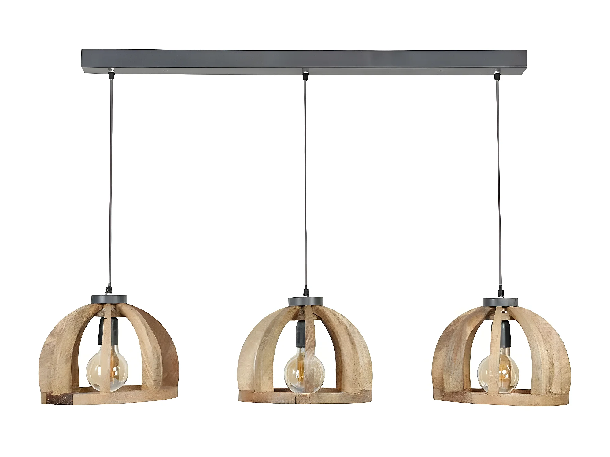 Suspension contemporaine 3 lampes ajourées bois de manguier LUCKNOW