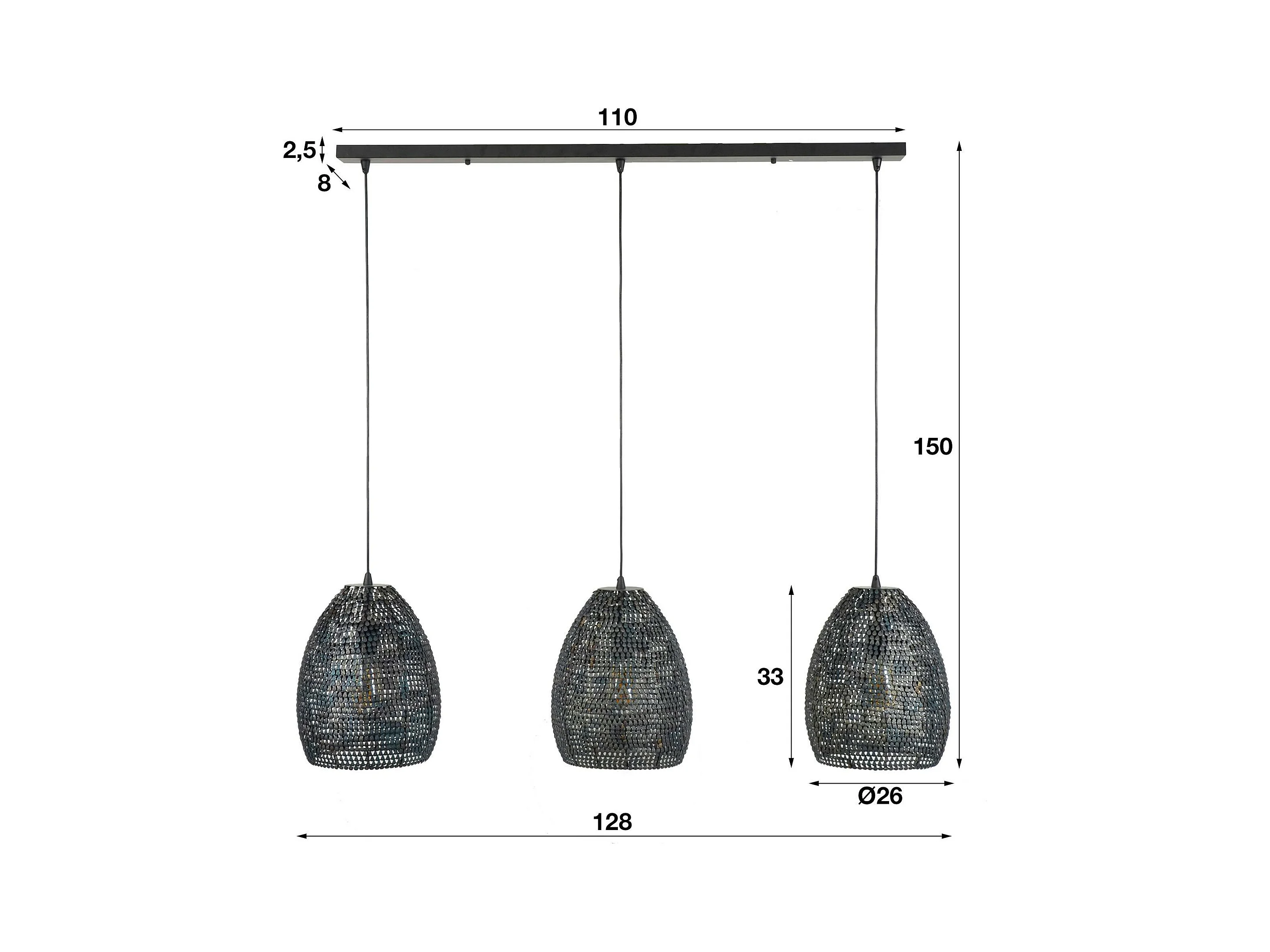 Suspension contemporaine 3 lampes ovales effet maille TRIBECA