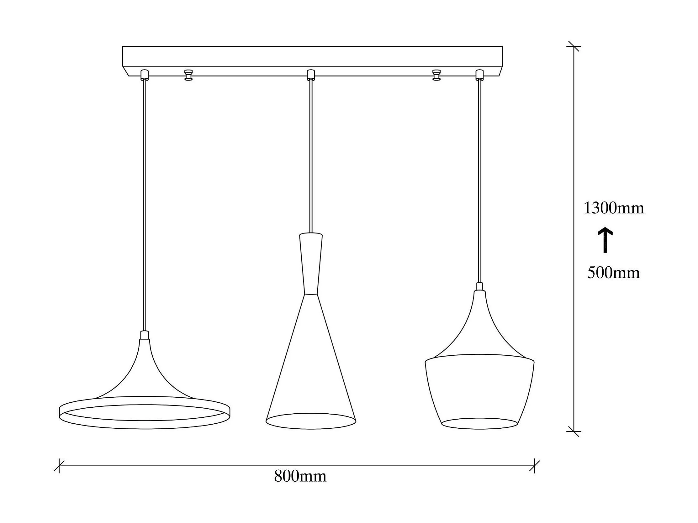 Suspension îlot cuisine – 3 lampes noir et or SILE