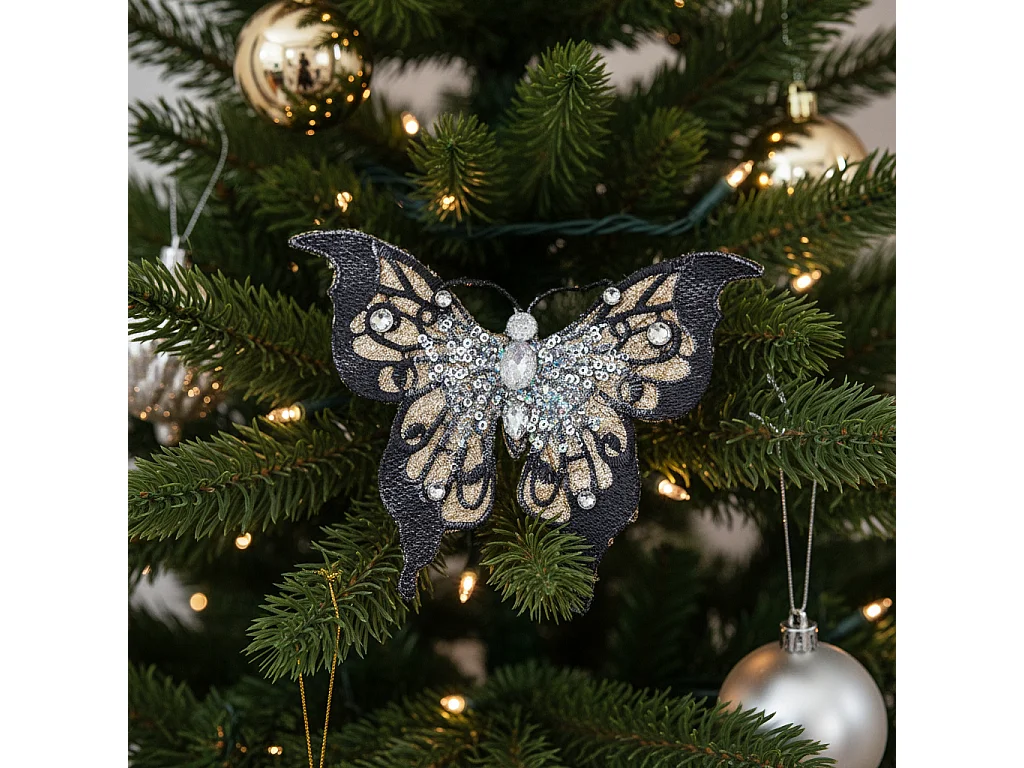 Lot de 4 Boules de Noël "Paillettes" 24cm Noir