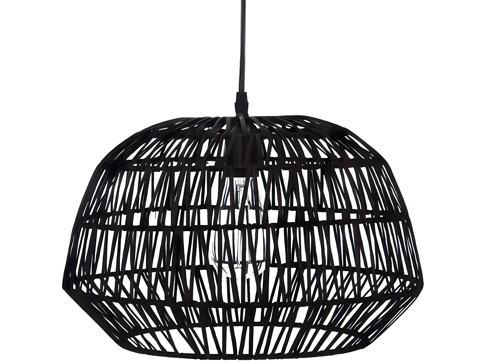 Suspension design en rotin et fer coloris noir - Dim : D 38 x H 32 cm