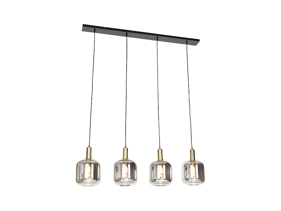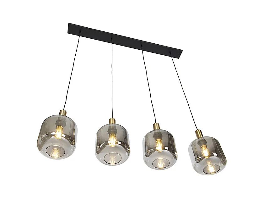 Suspension design noir avec or avec verre fumé 4 lumières - Zuzanna