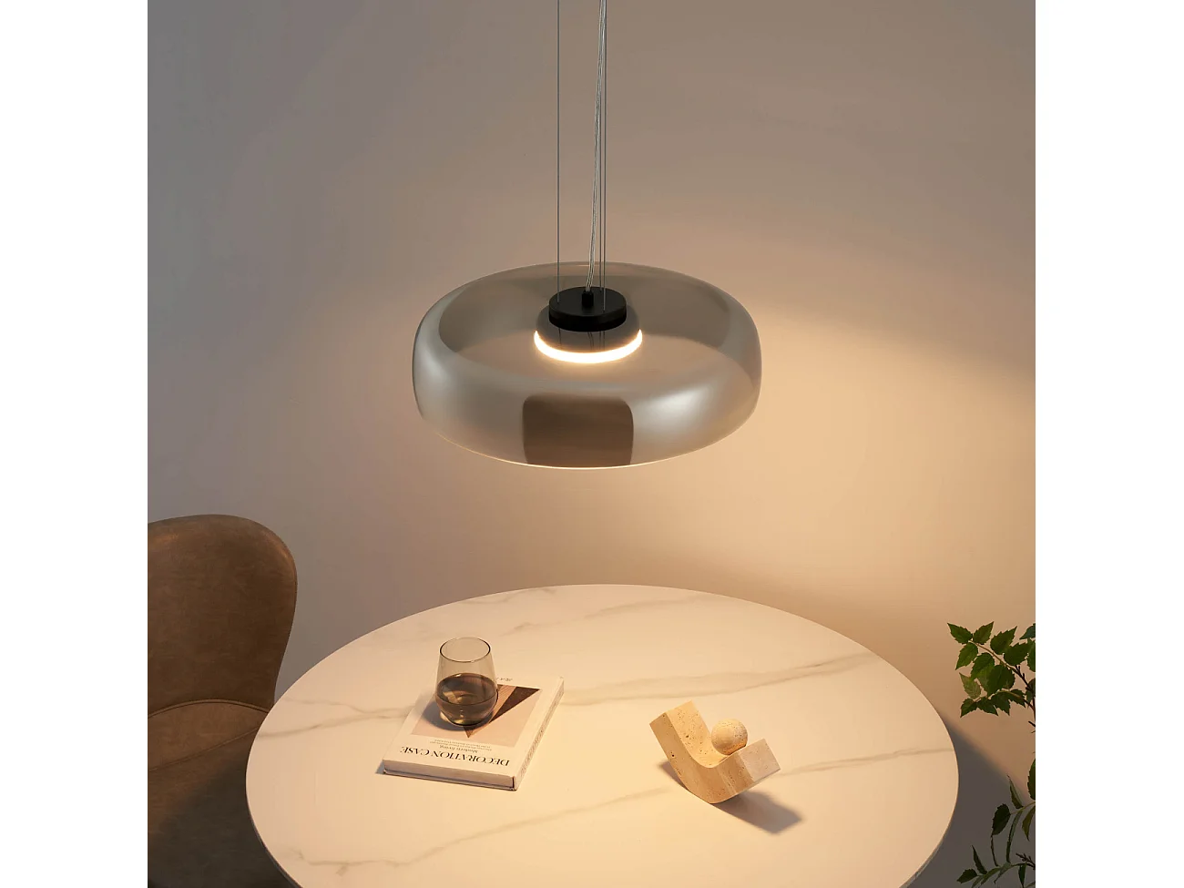 Suspension dôme en verre fumé et métal noir - Riccardo