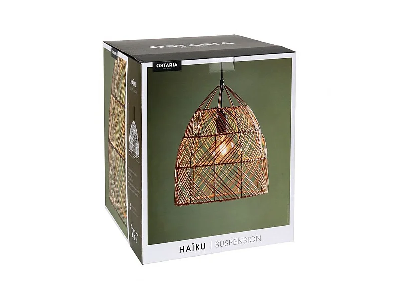 Plafonnier en raphia et métal marron 41x41x31h cm