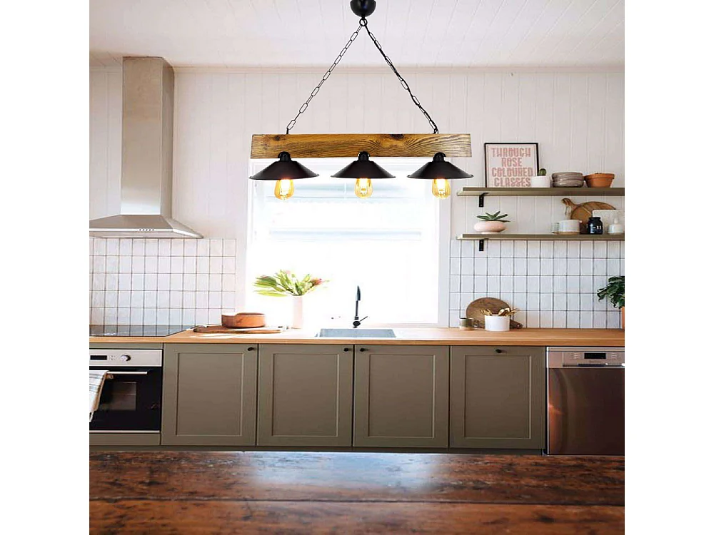Lampe suspendue en bois OLMO marron FABRILAMP