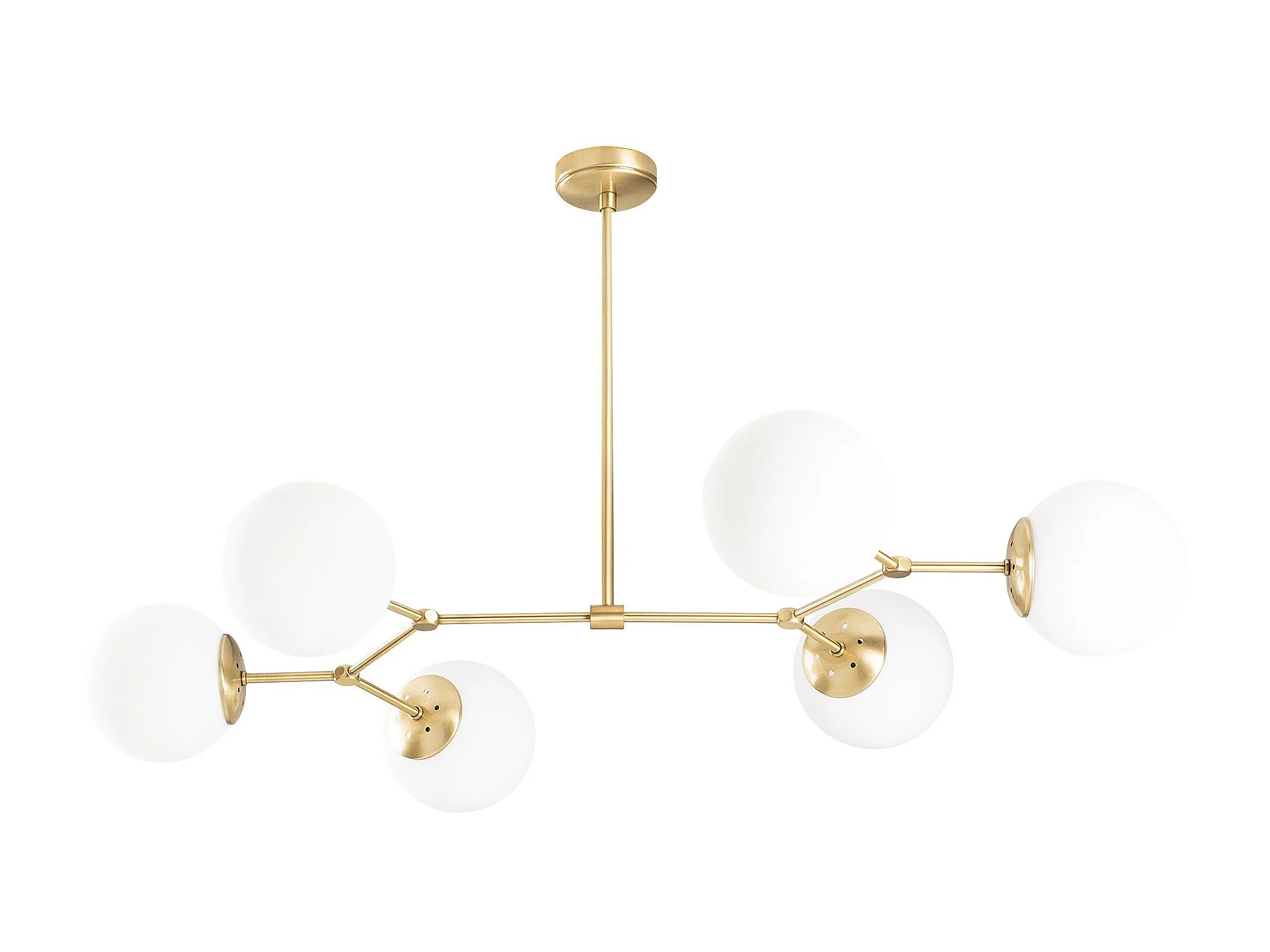 Lustre en métal - 6 globes - L. 100 x H. 52 cm - Doré et blanc - DAMAR