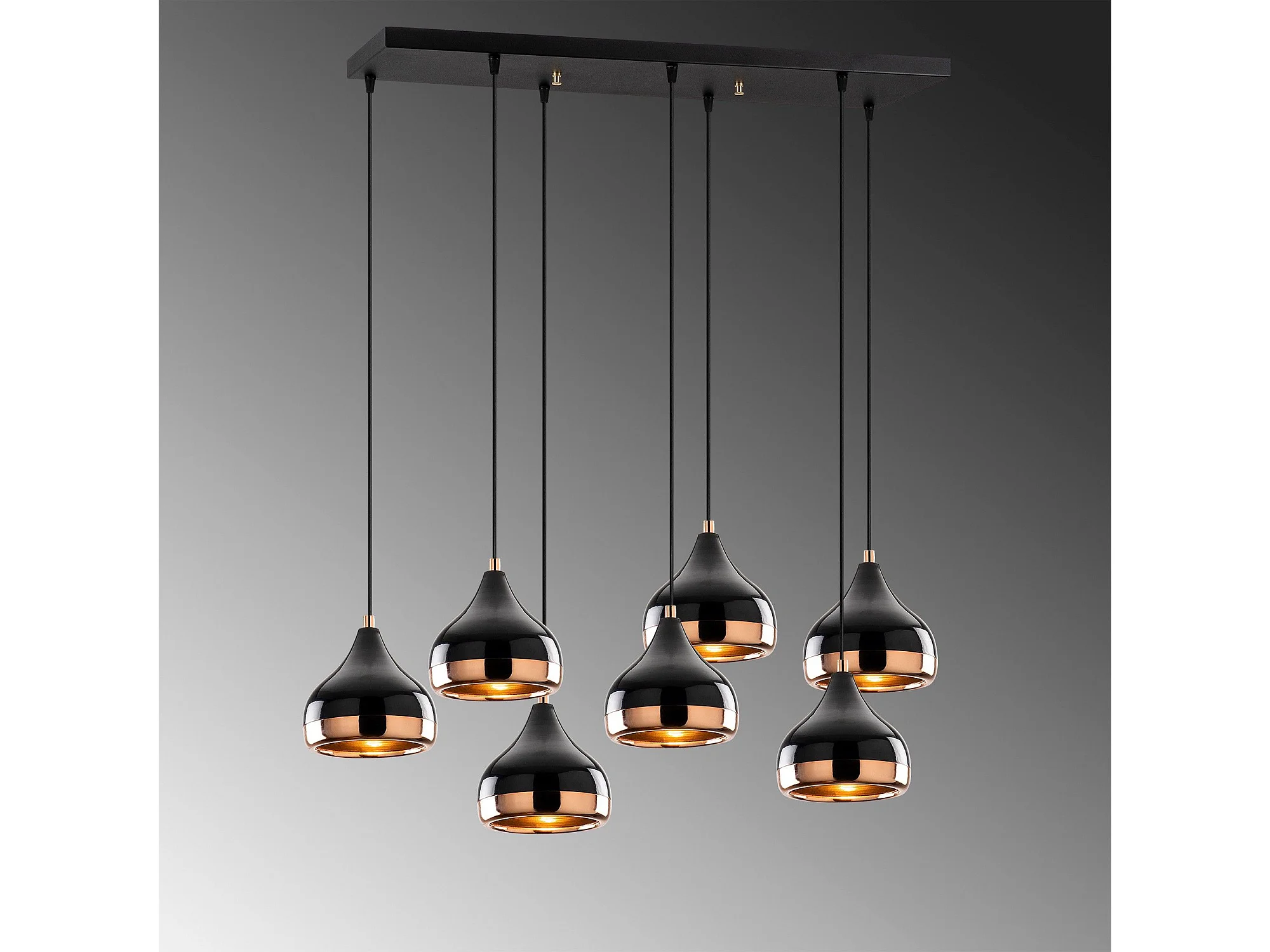 Suspension 7 lampes alignées Lectio 88cm Métal Noir et Or rose