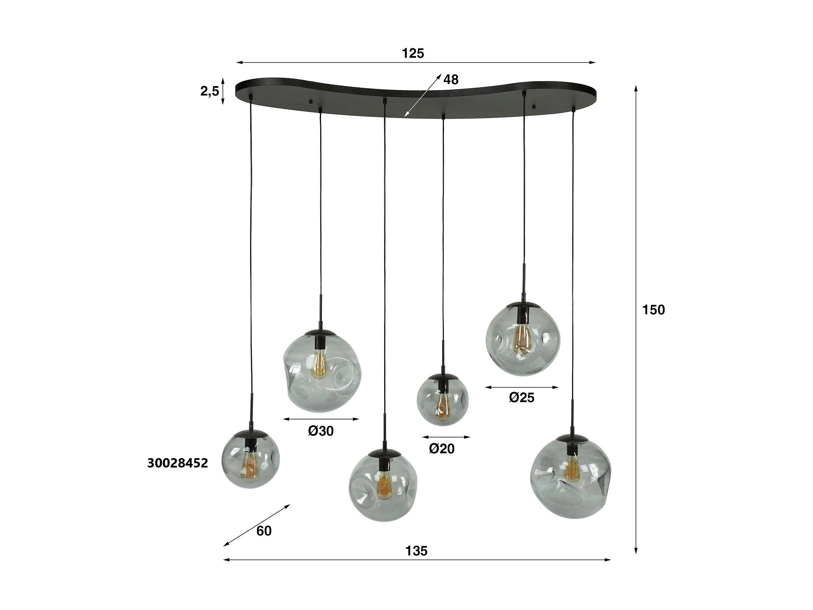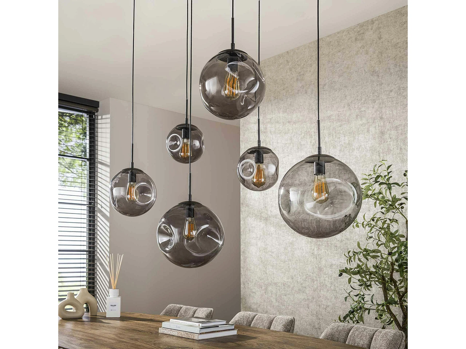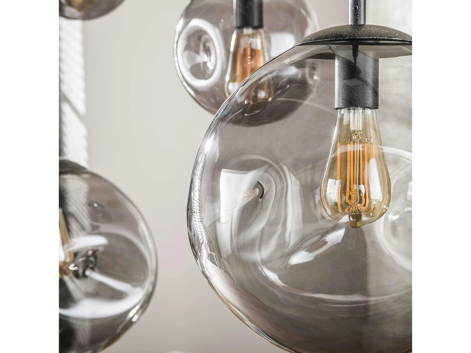 Suspension en verre fumé – 6 globes déformés NIAGARA