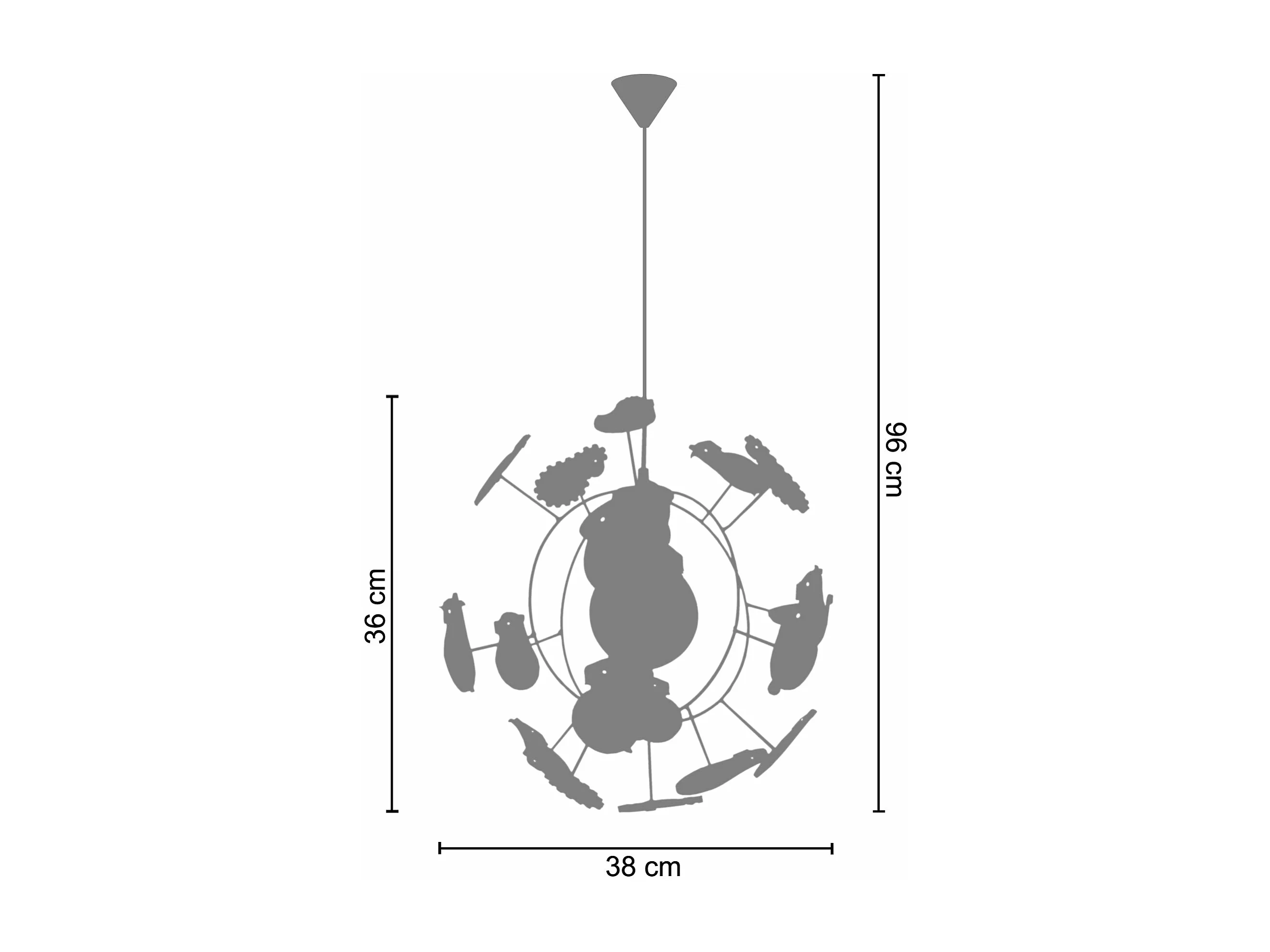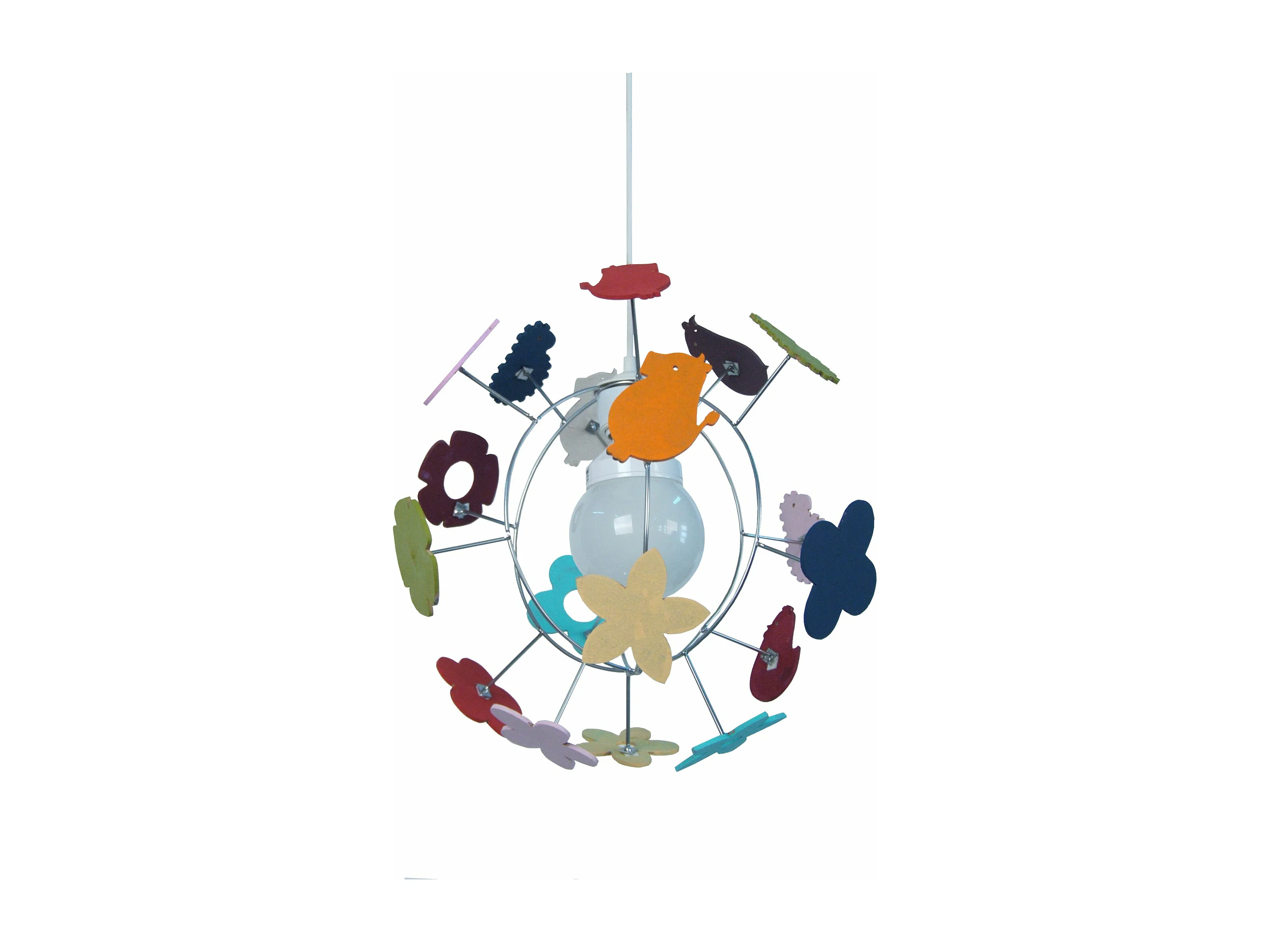 Suspension enfant globe métal,aluminium bois animaux colorés 107 cm.