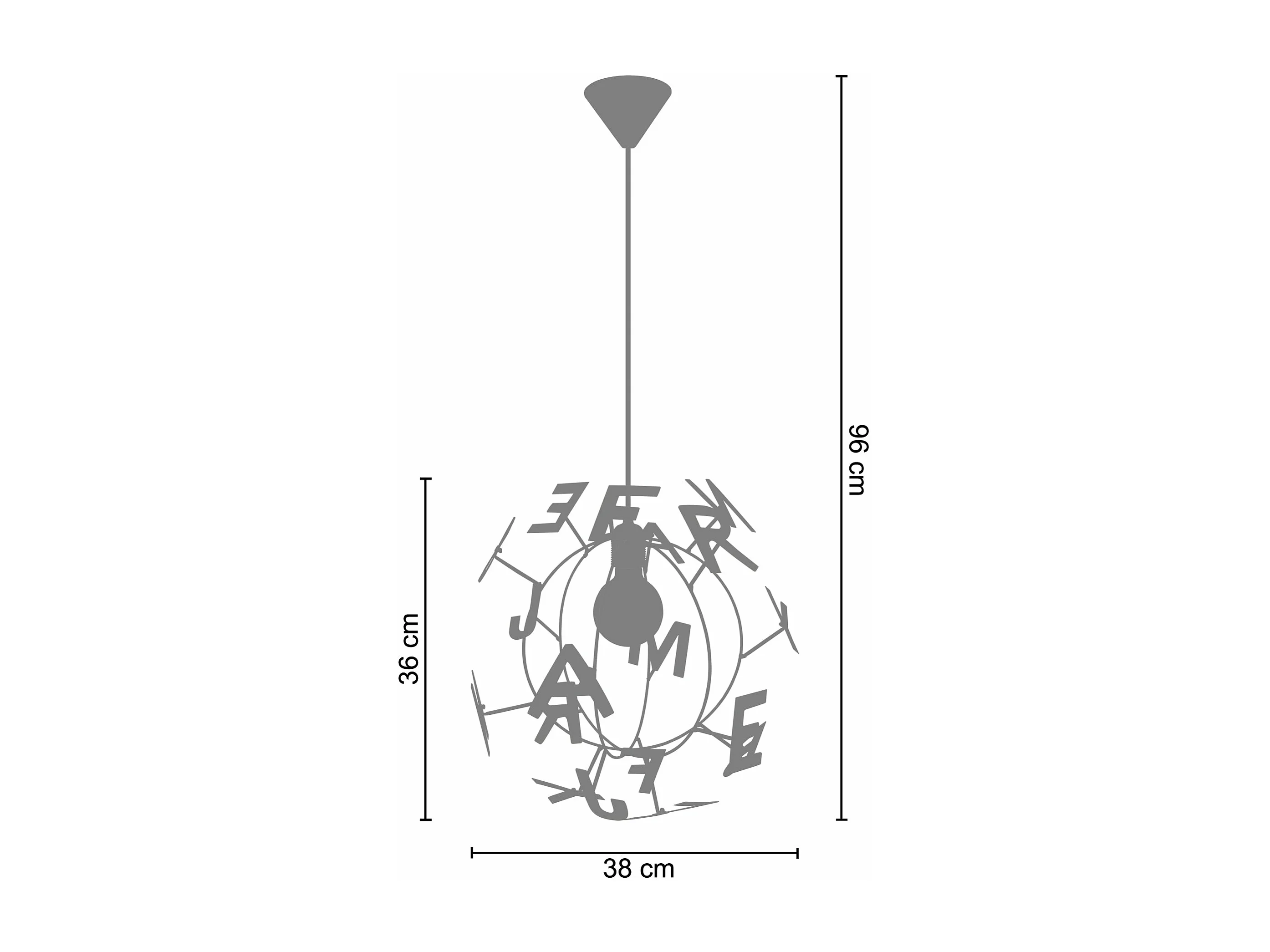 Suspension enfant globe métal,aluminium bois lettres colorés 107 cm.