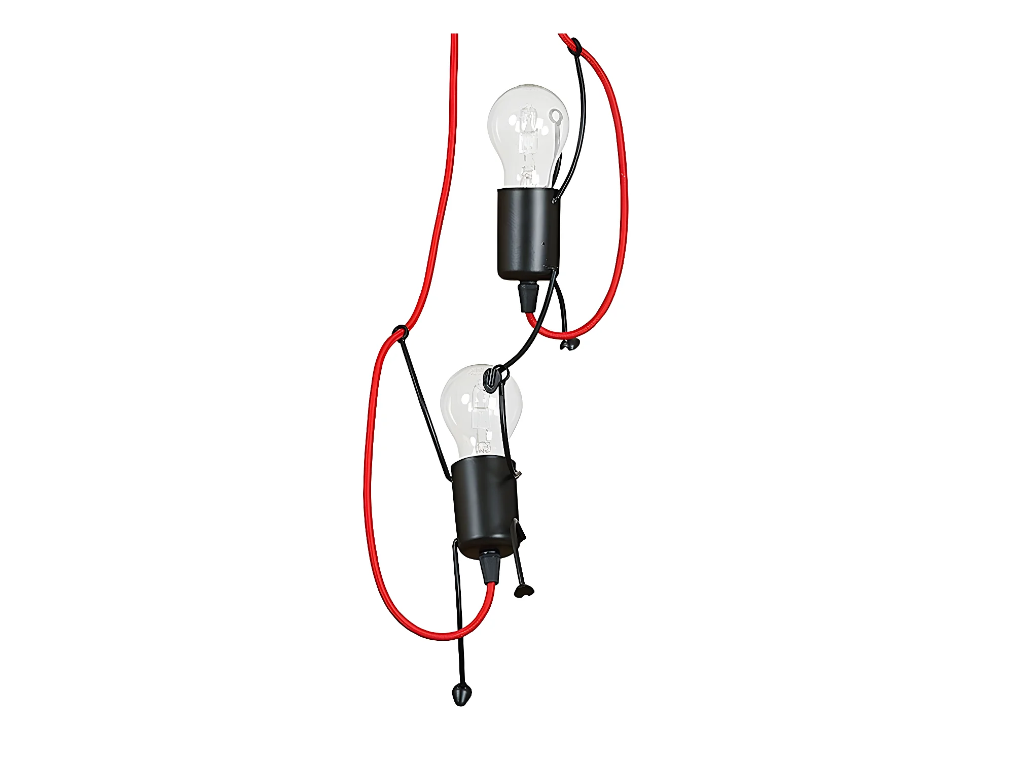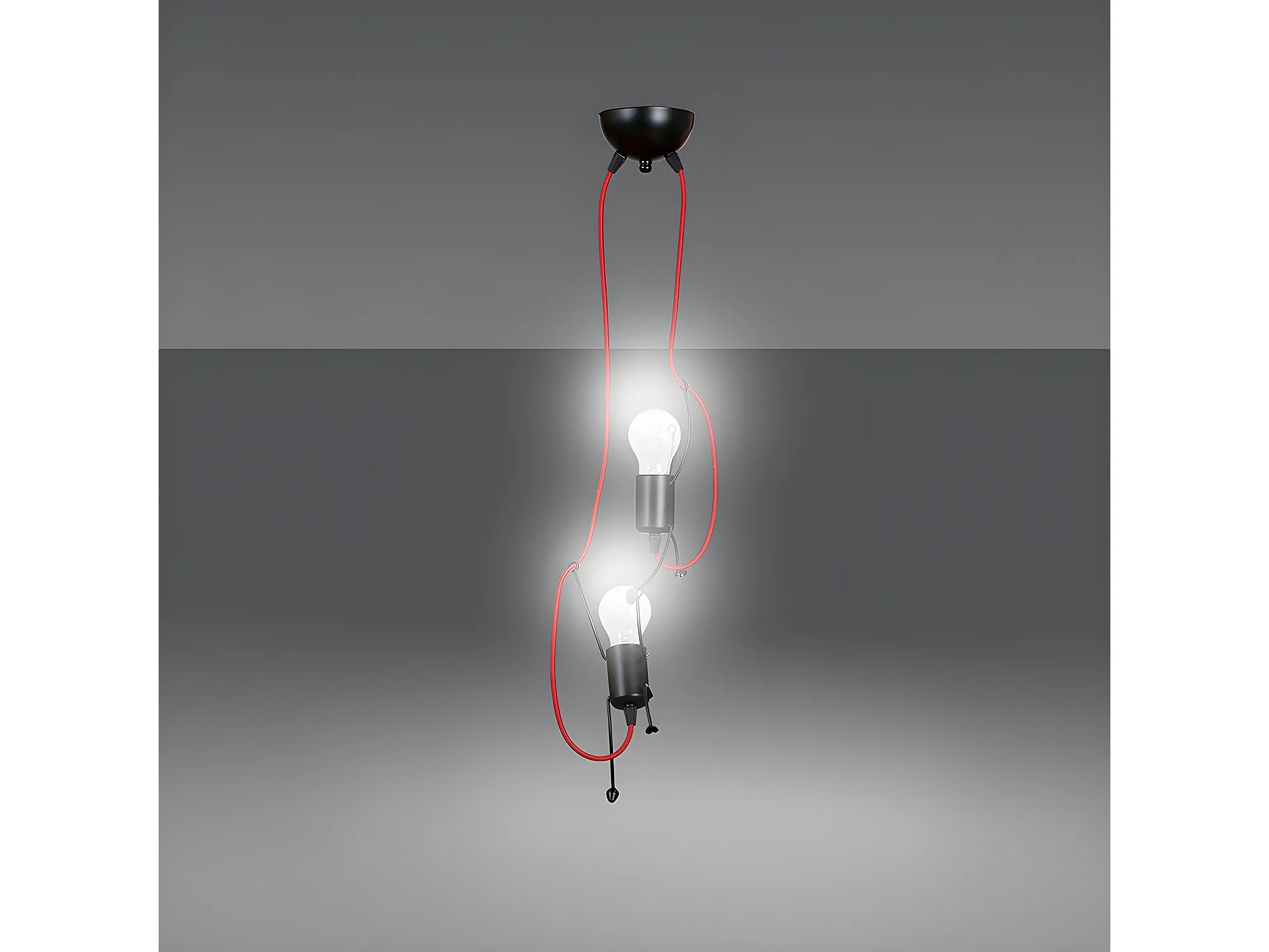 Suspension enfant Mime en métal noir avec câbles rouges 2xE27 ø20cm