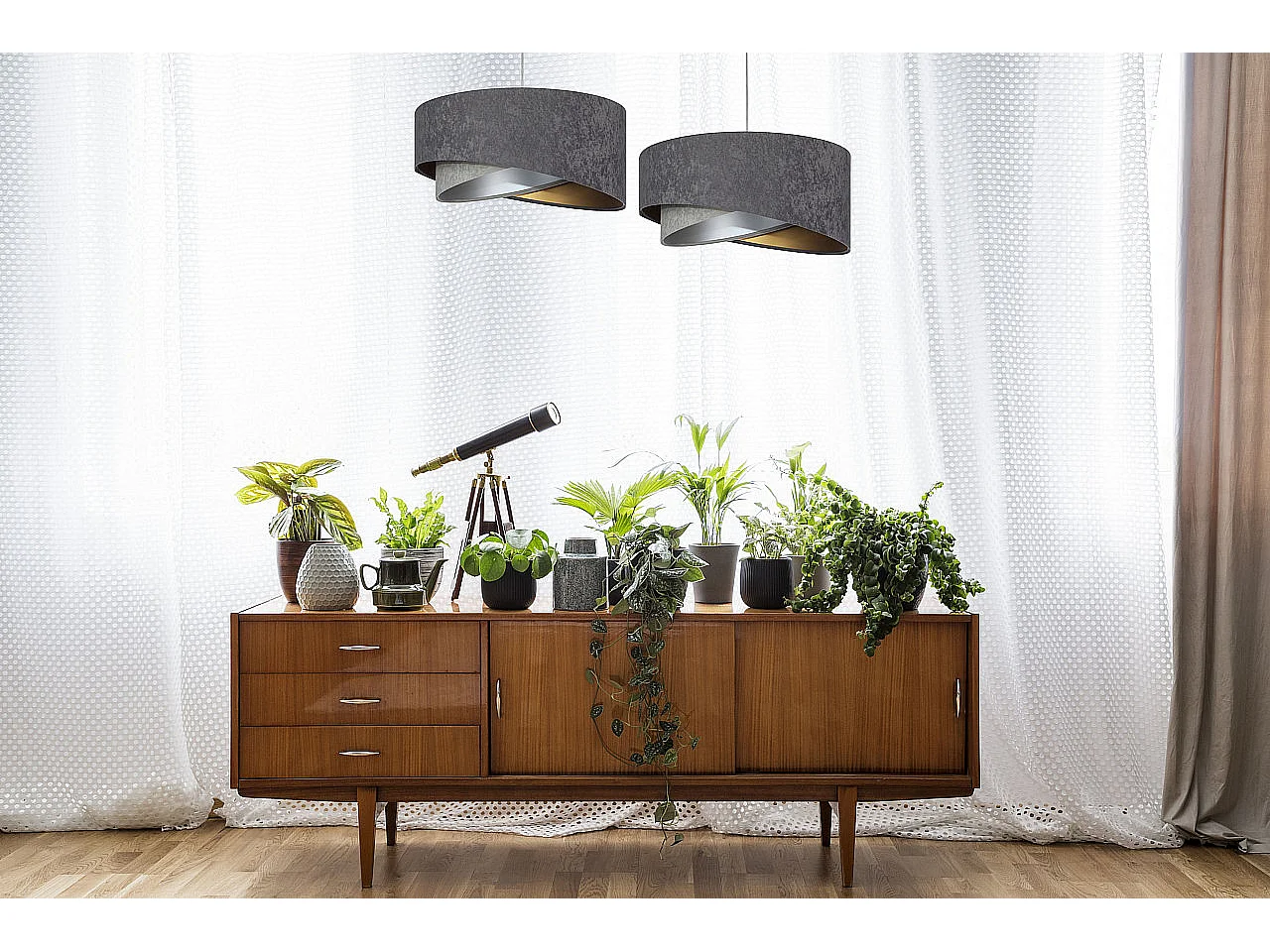 Suspension lustre et plafonnier gris