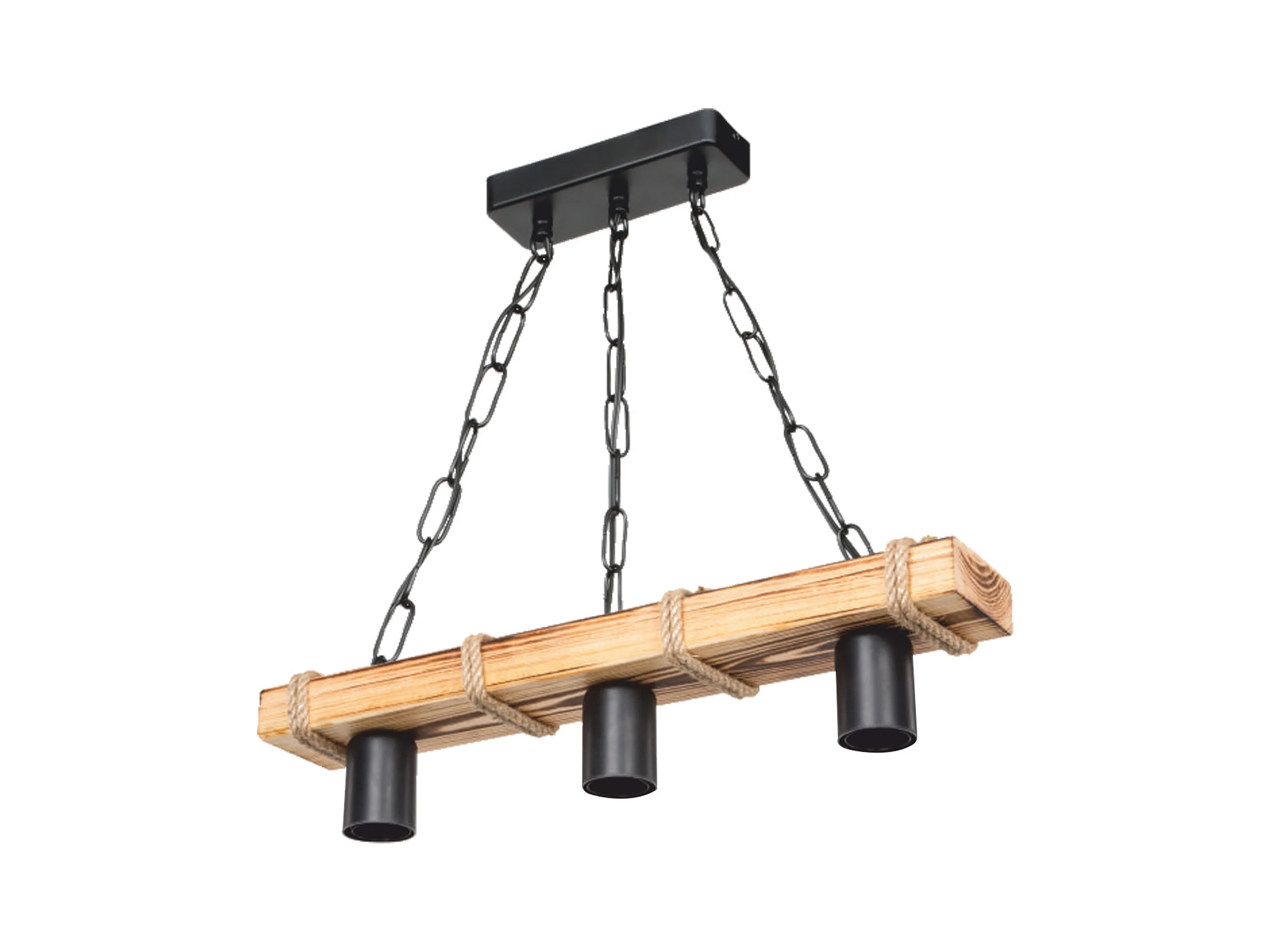 Suspension Hemel en métal bois corde de jute hauteur 60 cm 3 x E27 [lux.pro]