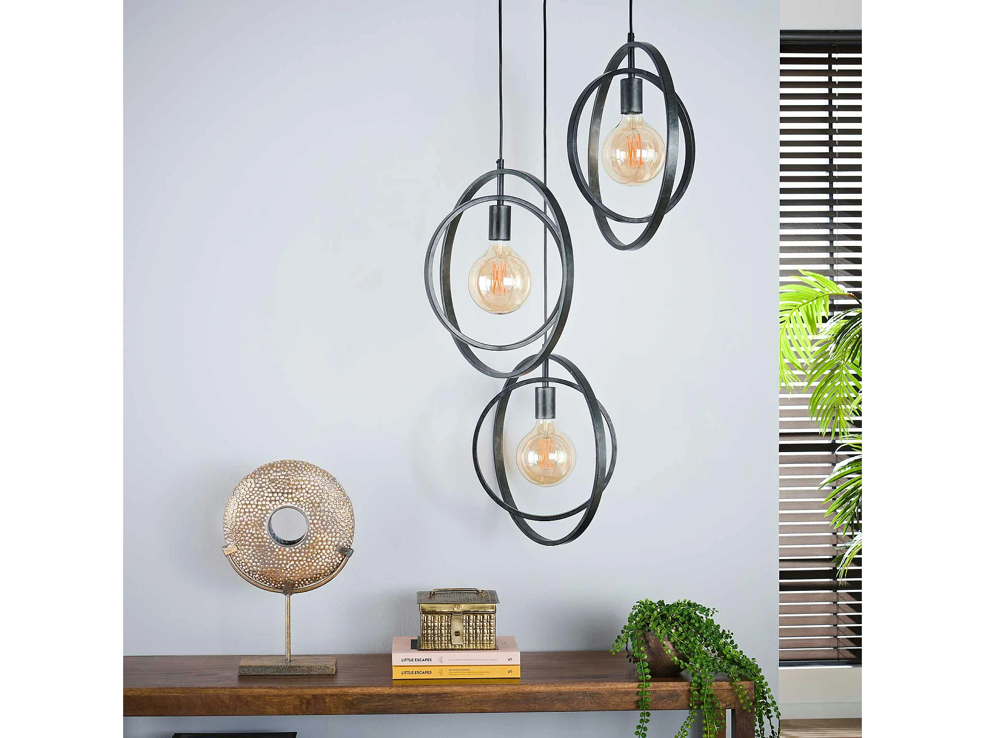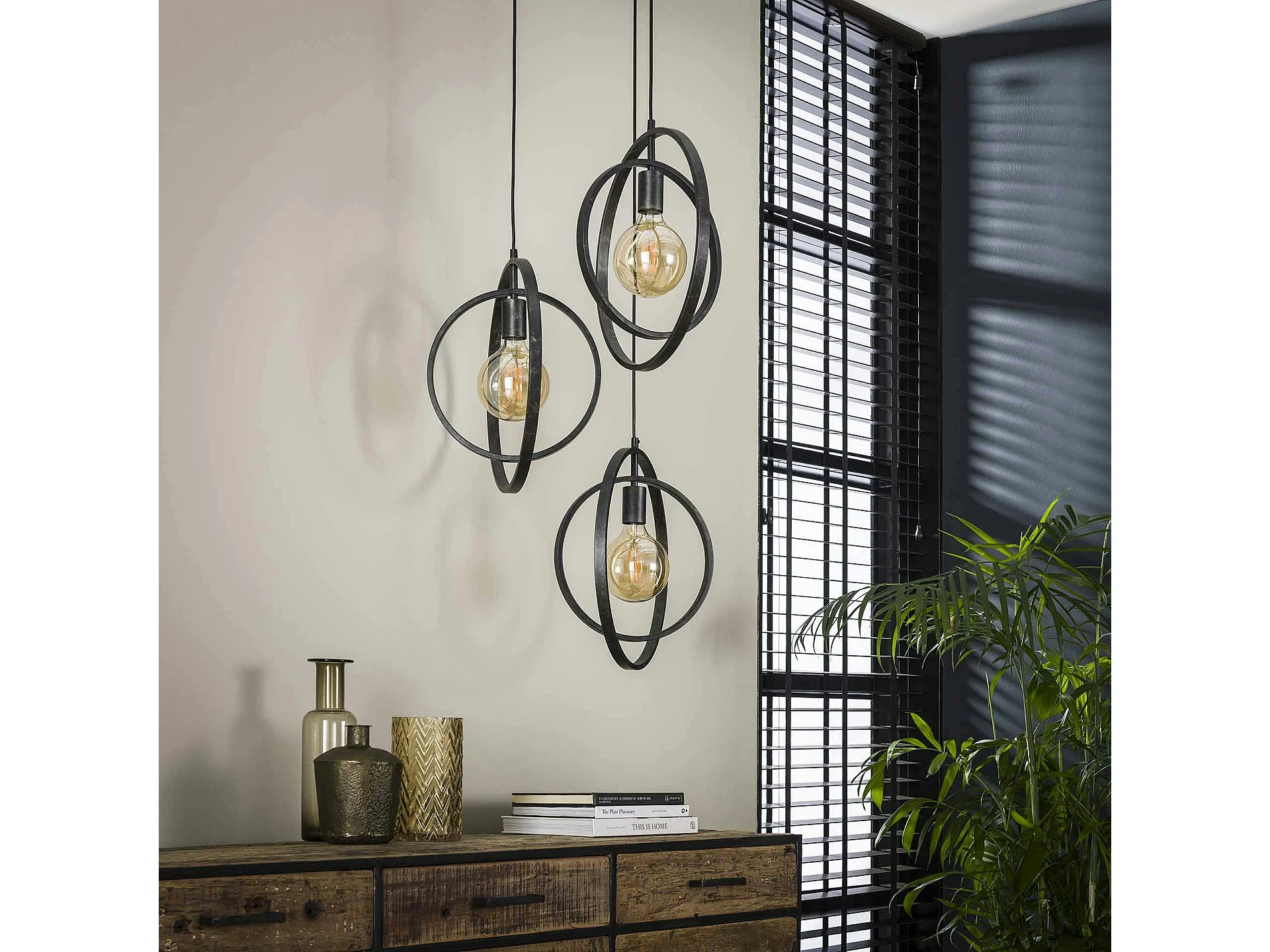 Suspension industrielle étagée 3 lampes anneaux croisés TRIBECA