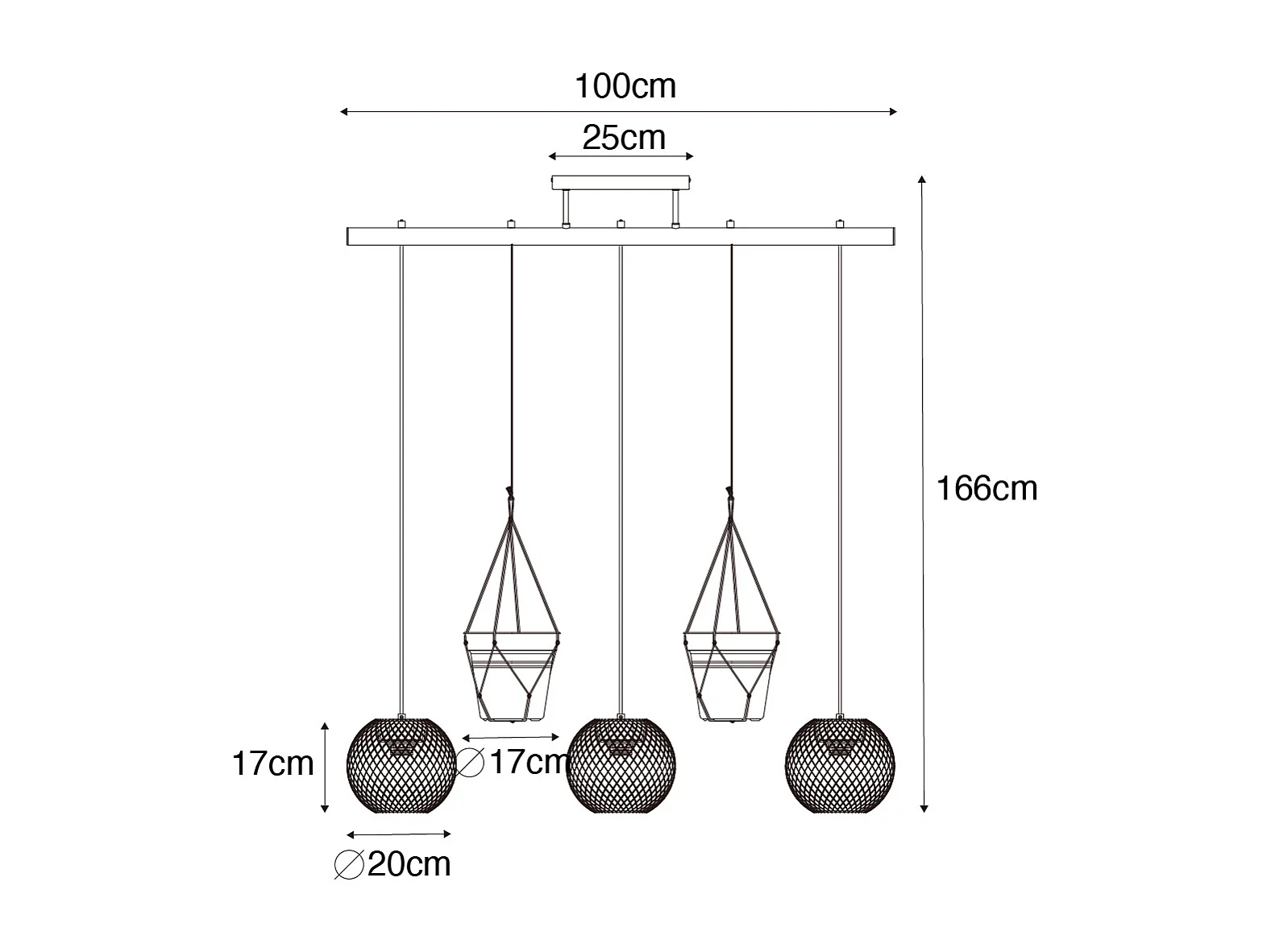 Suspension en métal 3 abat-jour globes effet maille TRIBECA
