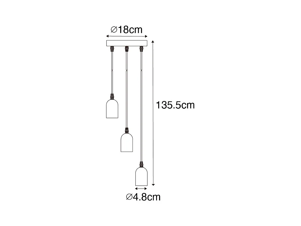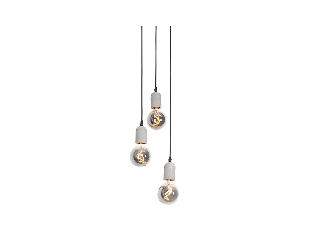 Suspension industrielle noire avec béton rond 3 lumières - Pedra