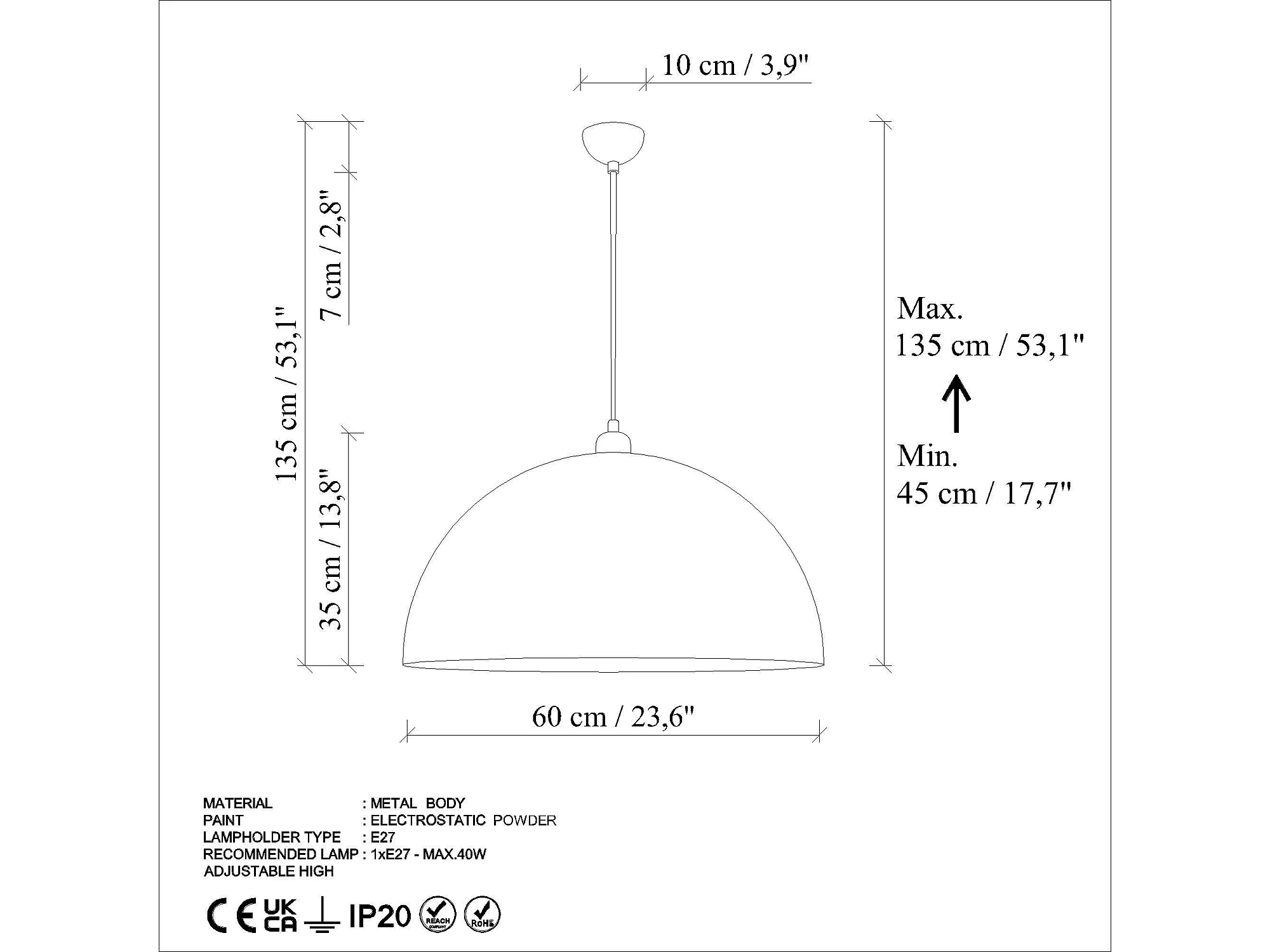 Suspension de table noire dôme intérieur doré Ø60 cm SILE